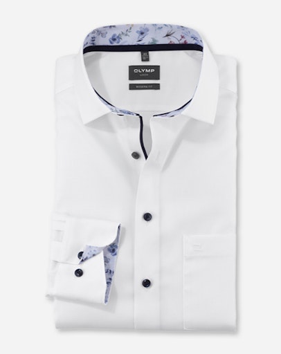 Das OLYMP Luxor modern fit bleibt den ganzen Tag in Bestform. Das knitter- und bügelfreie Businesshemd in feiner einfarbiger Webstruktur aus 100 Prozent Baumwolle sorgt für die modische Performance im Office. Der angesagte Global Kent mit Kontrast-Innenkragen vollendet die sportive Linie. Atmungsaktiv und hautsympathisch.