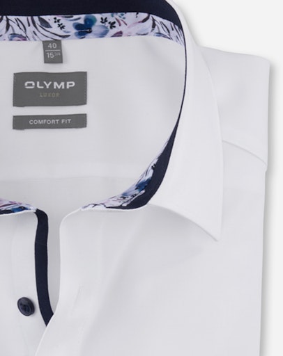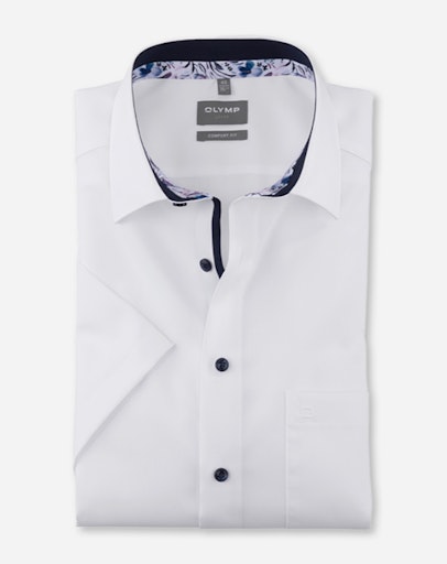 Modisches Update zum Frühling gefällig? Dann ein OLYMP Luxor Businesshemd in klassischer Dresscode-Farbe Weiß. Wirkungsvolle Kontrastdetails unterstützen die positive Wahrnehmung. Die angenehm kühl wirkende Popeline-Textur verspricht Tragekomfort und zeitsparende Pflege. Komfortabel geschnitten, smarter New Kent, Kurzarm.