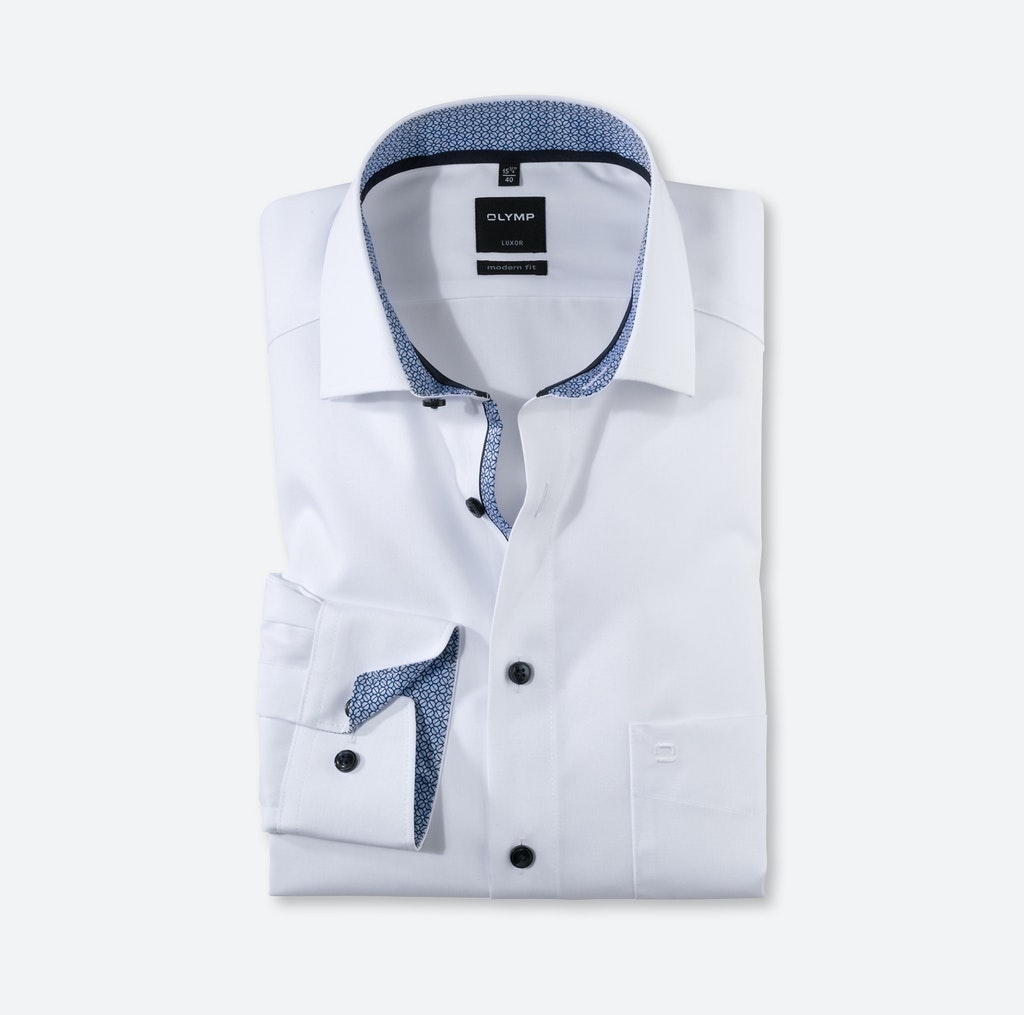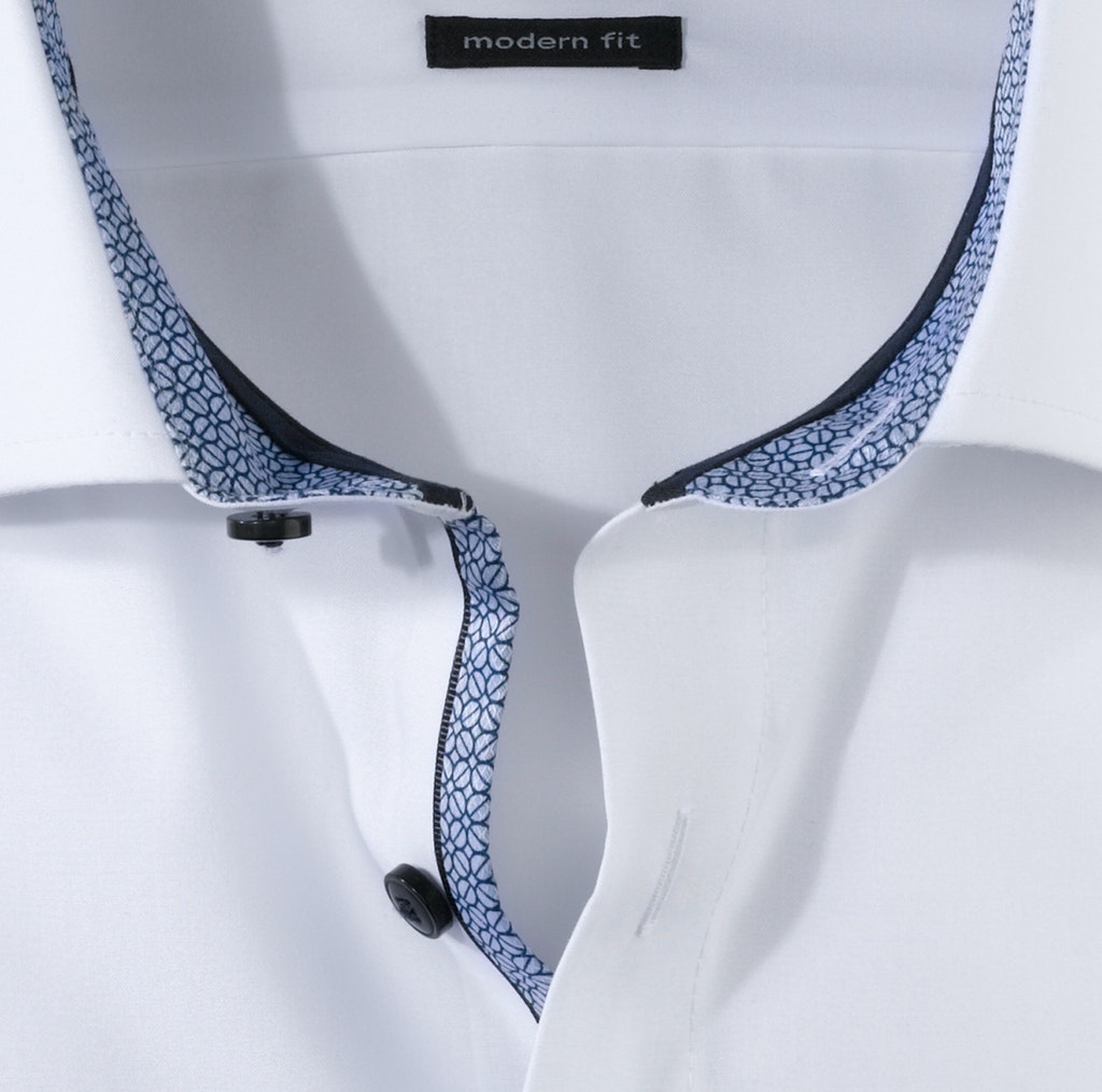 OLYMP Luxor modern fit mit extra langem Arm beugt Faltenbildung vor. Dieser Effekt gilt zwar vorrangig für den bügel- und knitterfreien Hemdenstoff. Doch die makellose Erscheinung setzt auch den Träger in ein positives Licht. Der Oberstoff in Schwarz harmoniert mit dem geschmackvoll darauf abgestimmten Besatz am Krageninnensteg und den Innenmanschetten in perfekter Art und Weise. Ein eleganter Global-Kent-Kragen und weitenverstellbare Kombimanschetten machen den Style komplett.
