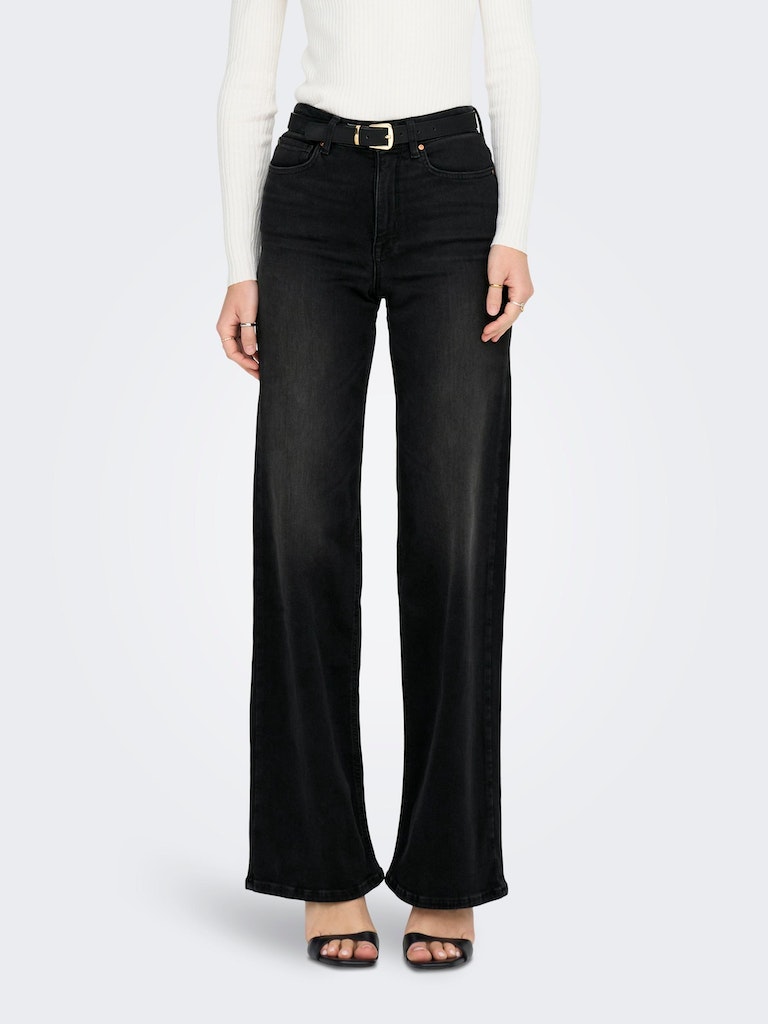 - Jeans mit hoher Taille- Weite Beinform- 5 Gürtelschlaufen- Knopfverschluss- 5 Taschen- Einfarbig- Schritthöhe: 86 cm in Größe S/34- Das Model trägt Größe S/34