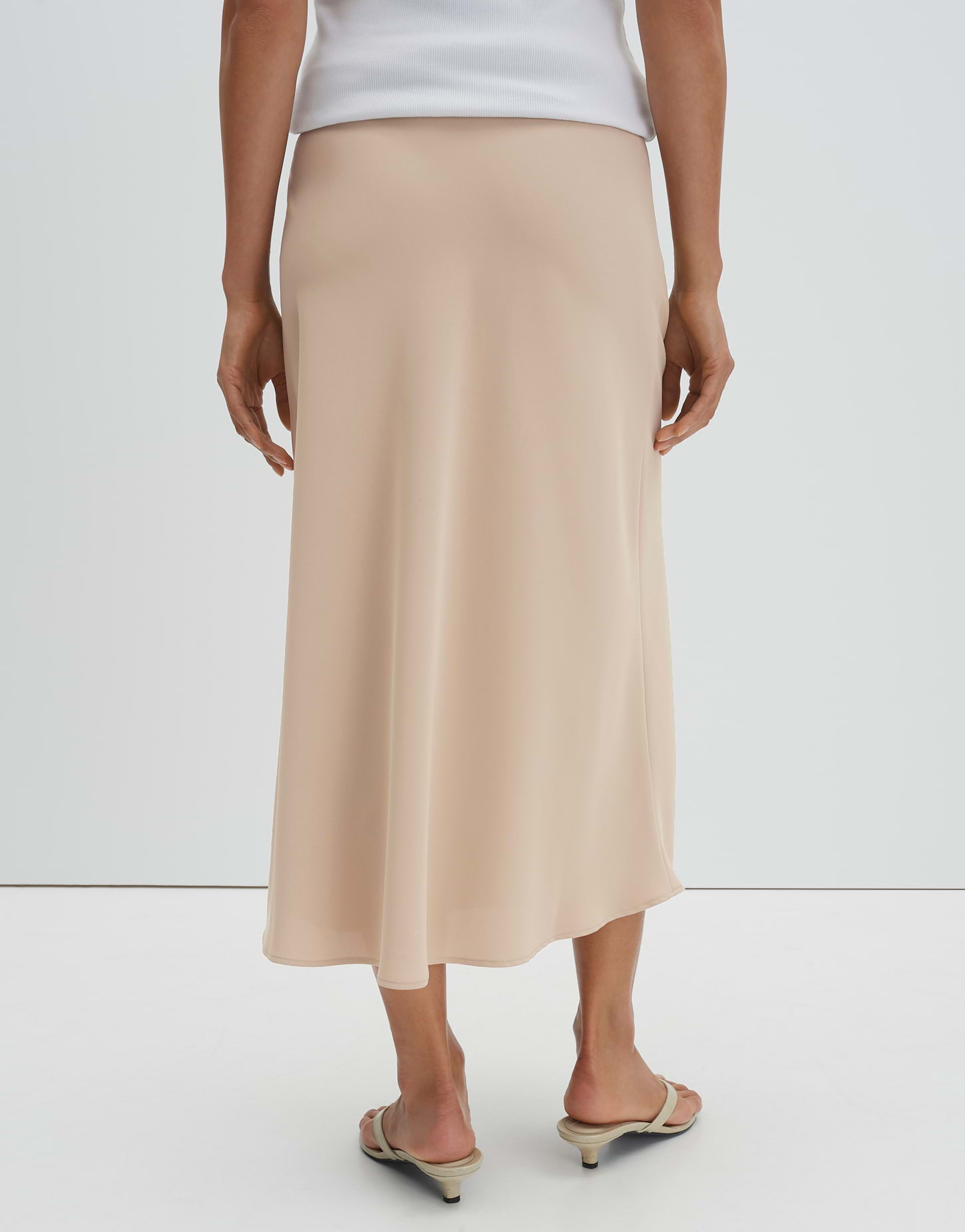 schmale Passform, A-Linie, Midi-Länge, hintere Länge ca. 81 cm in allen Größen, Model Größe 175 cm - trägt Größe 36, Satin, glatter Griff, knitterarm, pflegeleicht, elastischer Gummibund