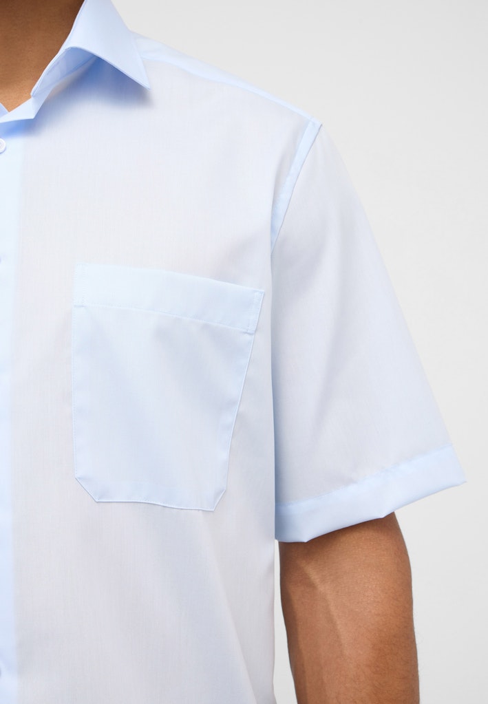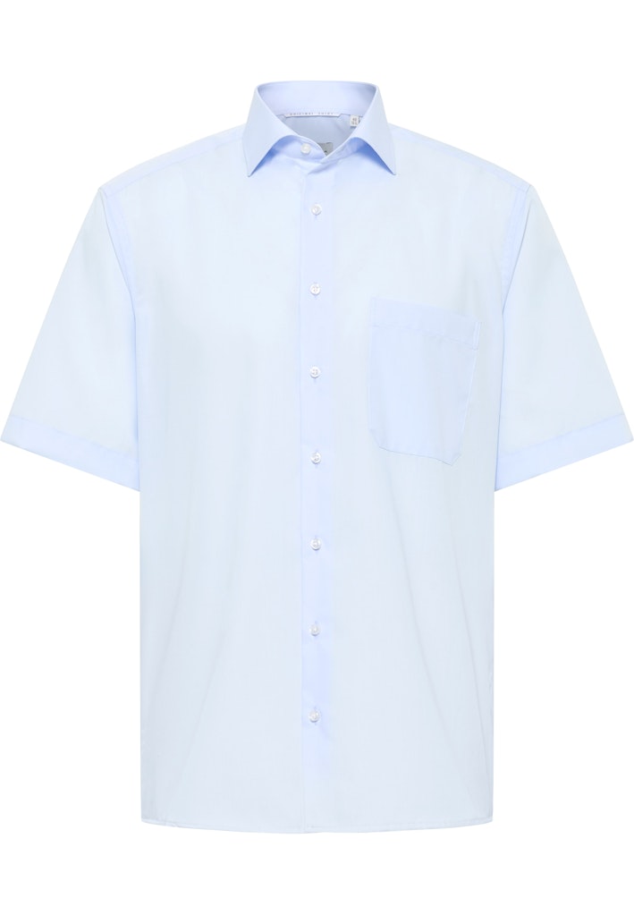 Gefertigt wurde dieses unifarbene COMFORT FIT Kurzarmhemd mit Classic Kent-Kragen und Brusttasche.