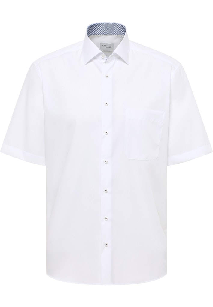 Es kommt mit einem Kent-Kragen, einer Brusttasche und in bequemer Schnittführung.