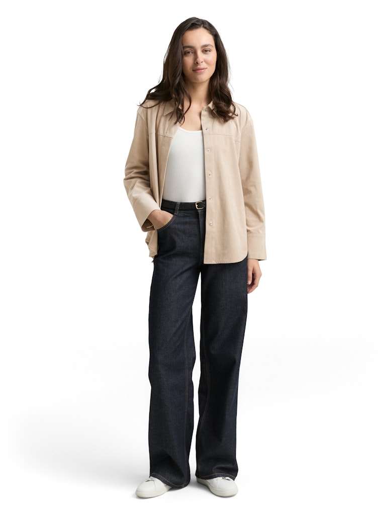 * Oversize Hemdjacke aus Wildlederimitat mit verdeckter Druckknopfleiste