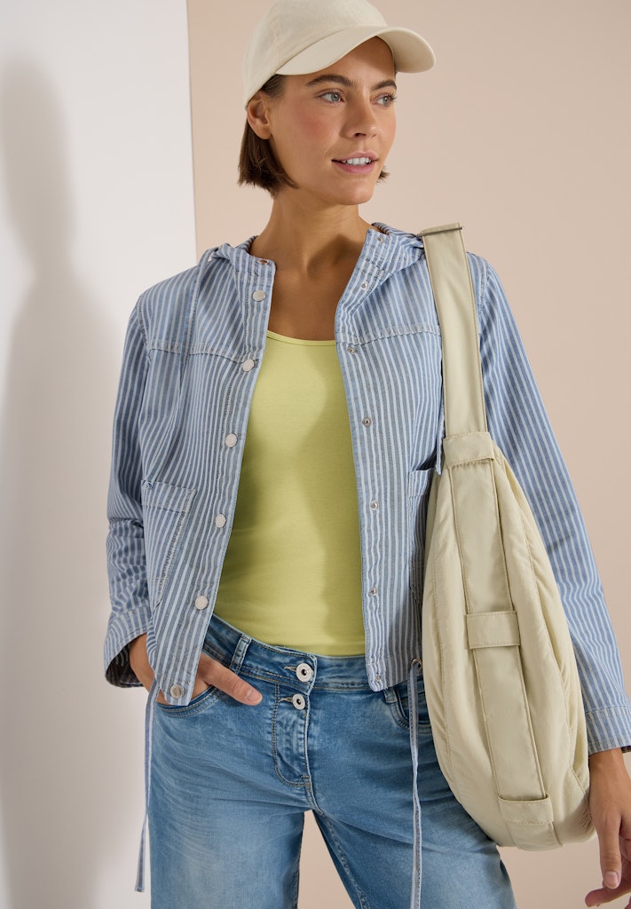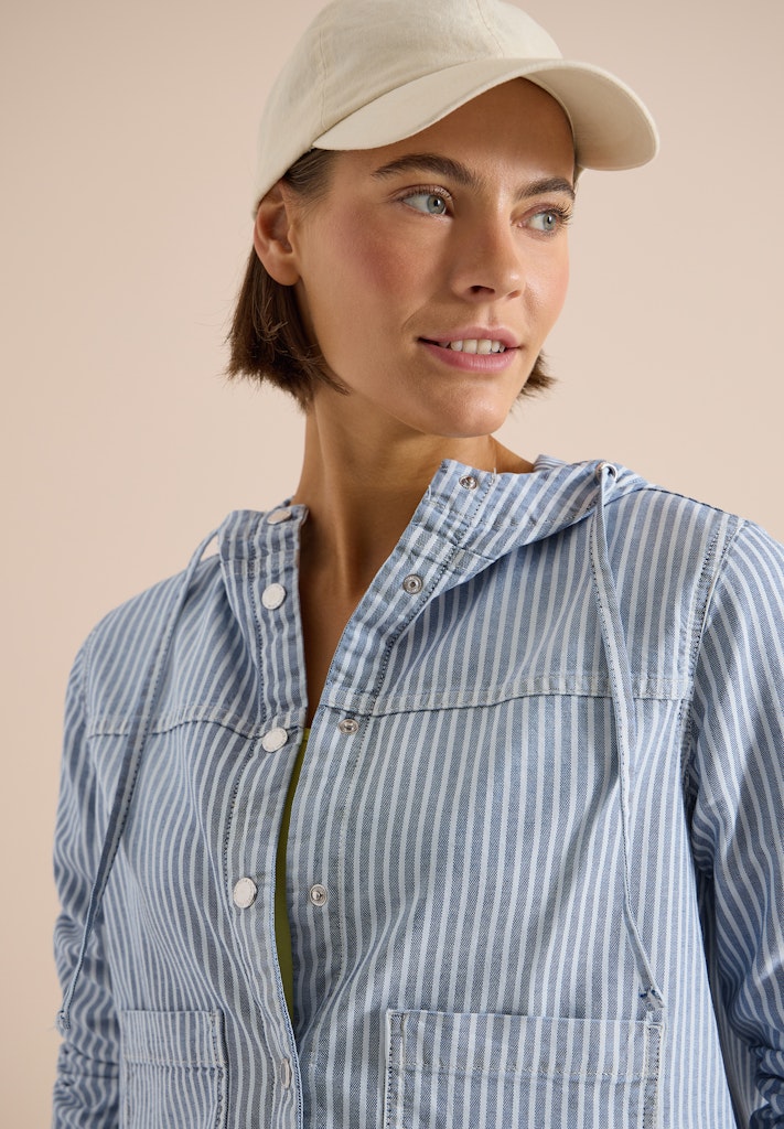Das gestreifte Overshirt von CECIL für Damen überzeugt mit seinem lässig-sportiven Look und angenehmem Tragekomfort. Die Kapuze mit Tunnelzug, eine Knopfleiste und aufgesetzte Taschen machen die Jacke besonders alltagstauglich und verleihen ihr einen lässigen Look. Dank des verkürzten Schnitts passt sie ideal zu Wide Leg Hosen und sorgt für eine moderne Silhouette. Die Baumwollqualität mit Stretchanteil trägt sich bequem und lässt sich vielseitig kombinieren. Baumwollmix Jacke Casual Kapuze mit Tunnelzug Langarm mit Bündchen und Knopf Lässig und sportiv Material: 98% Baumwolle, 2% Elasthan