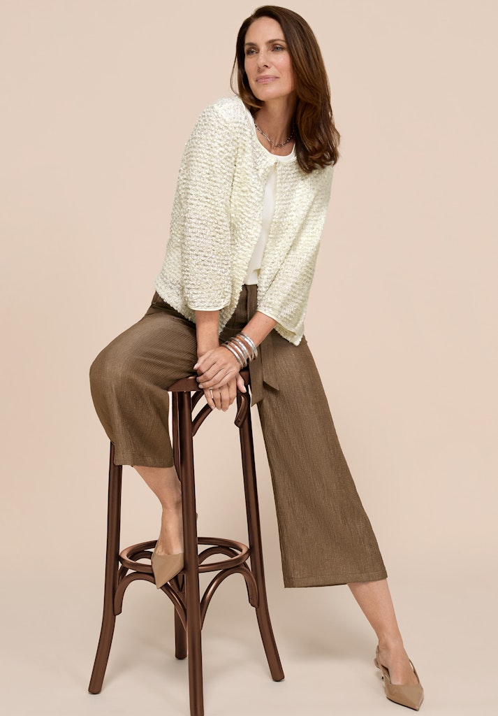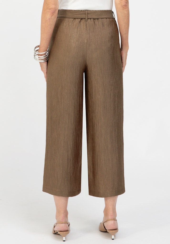 Unsere moderne Culotte Parigi überzeugt mit stilvoller Struktur-Optik und einem modisch weiten Bein. Eingrifftaschen und ein passender Stoffgürtel setzen lässige Akzente, während der elastische Gummibund mit Gürtelschlaufen für eine bequeme und flexible Passform sorgt. Die gerade, verkürzte Silhouette verleiht der Culotte einen zeitgemäßen Look und macht sie vielseitig kombinierbar. Parigi ist damit der ideale Begleiter für moderne und stilvolle Alltags-Outfits.