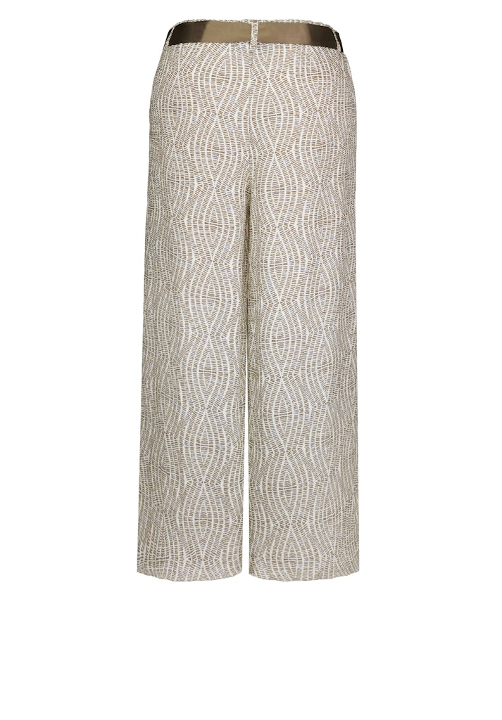 Unsere neue Culotte Parigi begeistert mit einem coolen Allover-Print in aktueller Trendfarbe und bringt frischen Wind in deine Garderobe. Das weite Bein und die verkürzte, gerade Form sorgen für eine moderne Silhouette und einen angesagten Look.