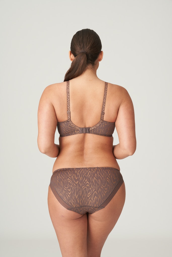 T-Shirt-BH mit herzförmigen gepolsterten Cups, überzogen mit Satin. Der Stoff ist mit einem goldfarbenen Zebramuster bedruckt. Die Träger mit Leopardenmuster können Sie ruhig unter der Kleidung hervorblitzen lassen.