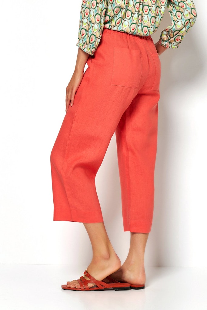 Damenhose Pia Wide Leg 3/4 - Apple - Qualität: Linen - Hose mit entspannter Obeschenkelweite - Hohe Leibhöhe und normale Fußweite - Bequemer Gummibund für ein angenehmes Tragegefühl