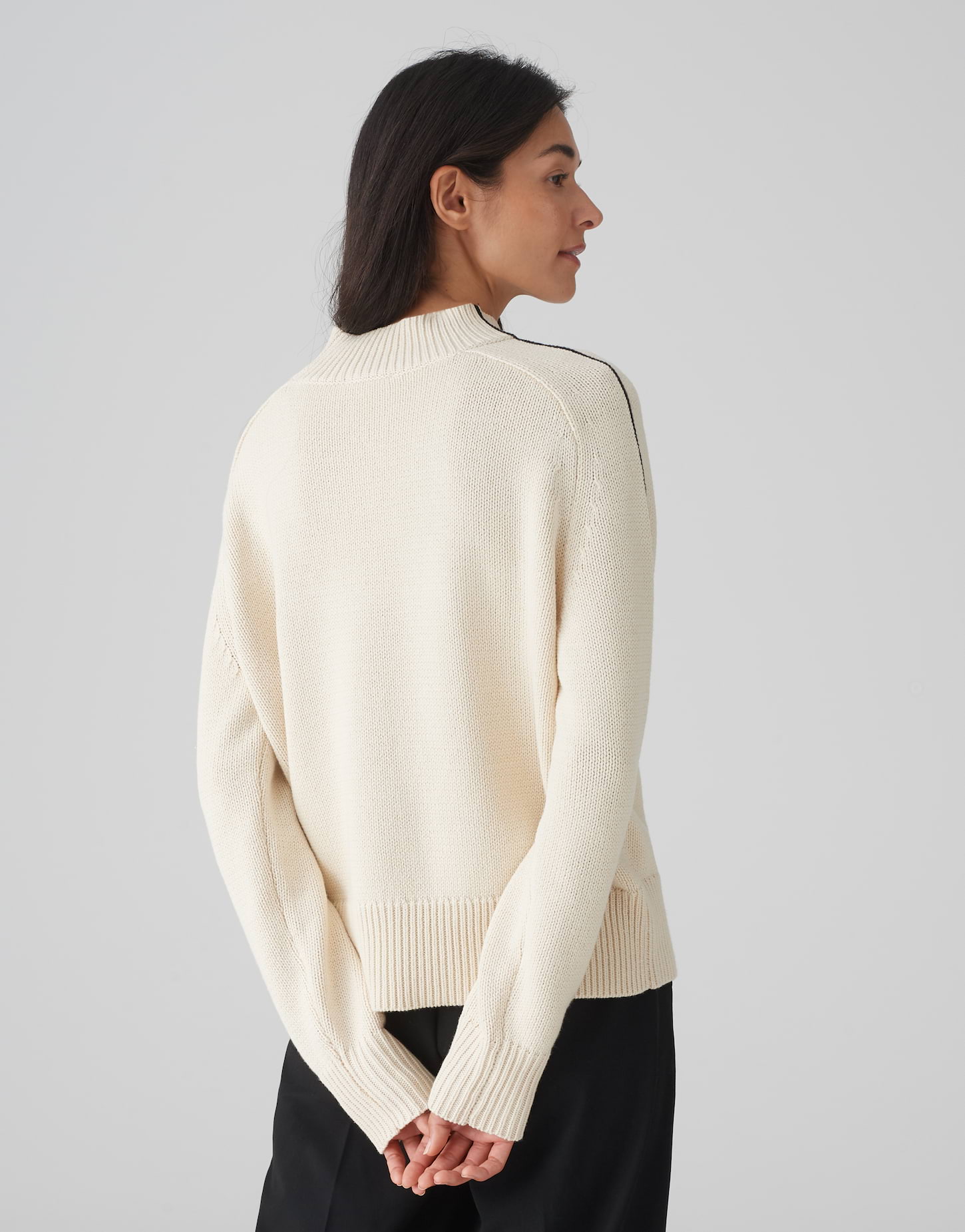 lockere Passform, O-Form, leicht verkürzt geschnitten, Langarm, Stehkragen, Rückenlänge ca. 56 cm bei Größe 36, Model Größe 175 cm - trägt Größe 36, Strick, weicher Griff, breiter Ripp-Saum, Raglanärmel