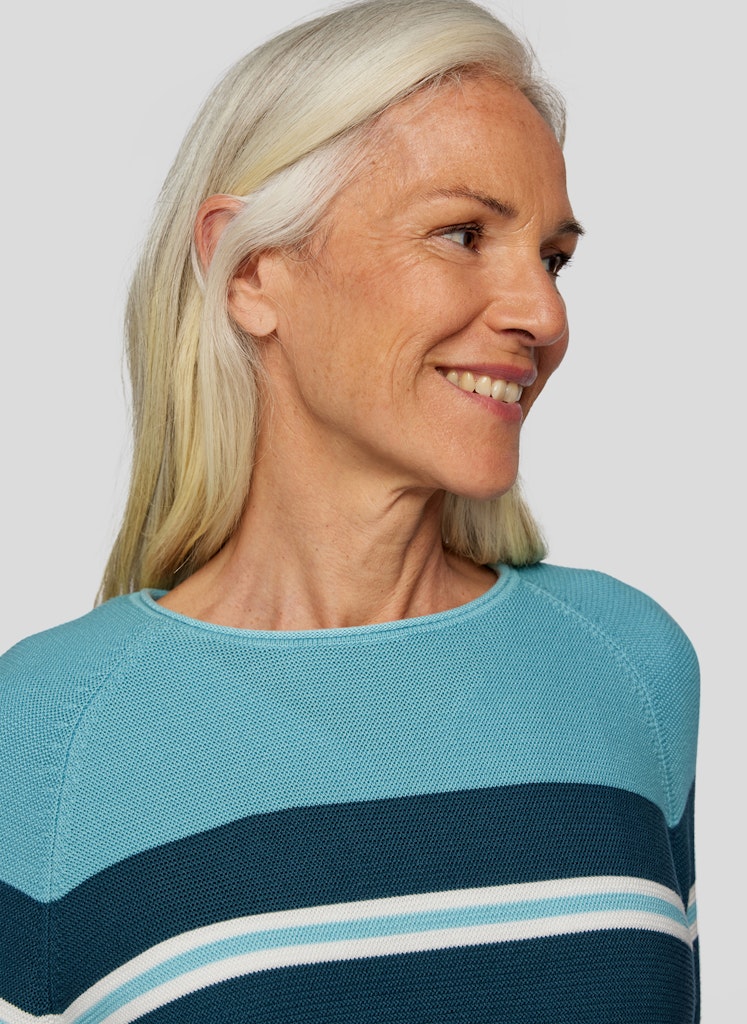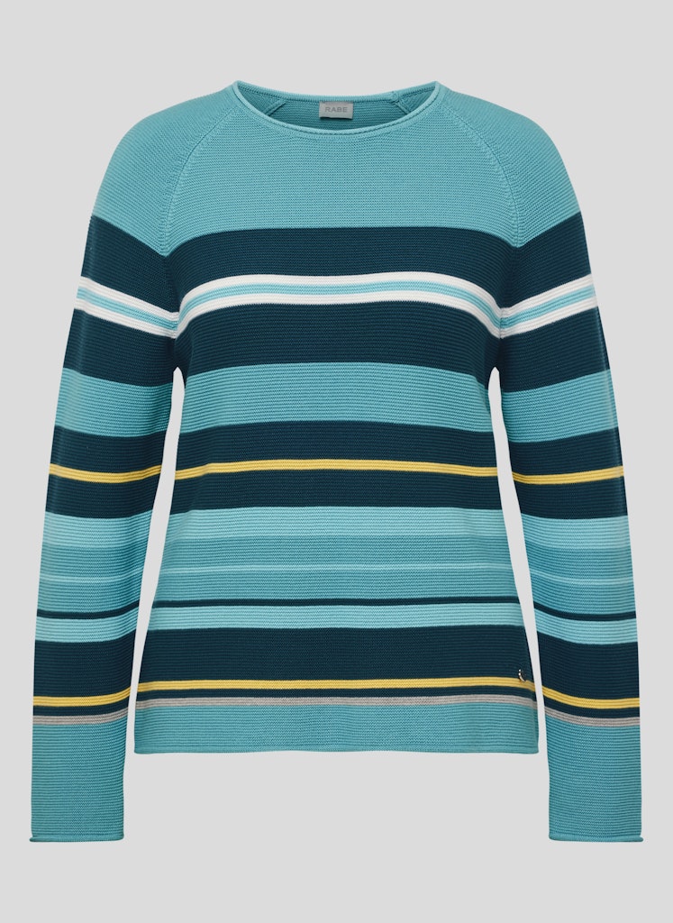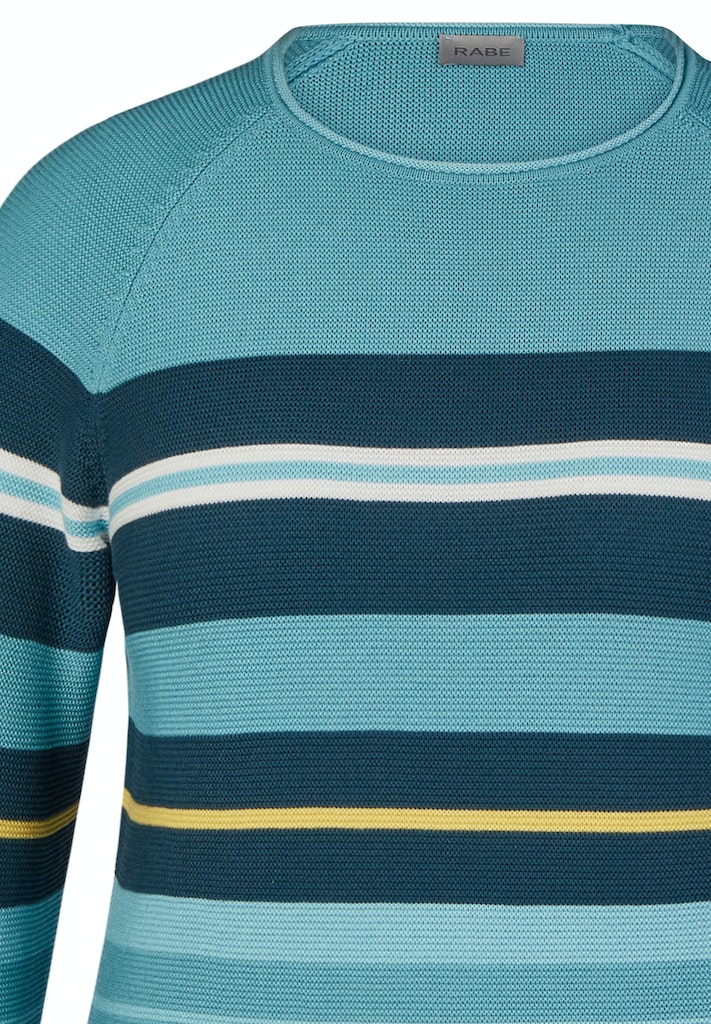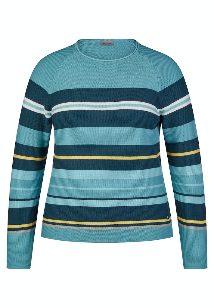 Dieser taillierte Pullover aus 50% Baumwolle und 50% Polyacryl ist perfekt für die kühleren Tage im Herbst. Mit seinem Rundhalsausschnitt, langen Ärmeln und dem gestreiften Muster in der Basic-Farbe Petrol oder Orange ist er ein vielseitiges Kleidungsstück, das jedem Outfit eine klassische Note verleiht.