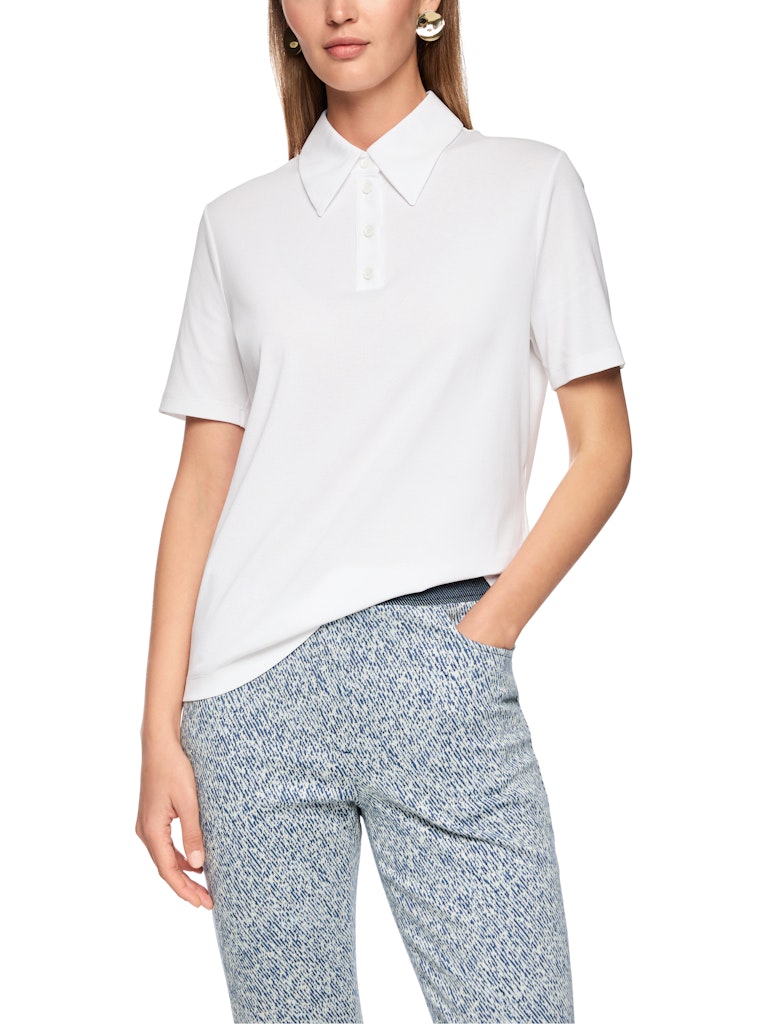 Poloshirt aus Baumwollstretch|Dieses Poloshirt aus softem Baumwollstretch überzeugt mit legerem Schnitt und halblangen Ärmeln für angenehmen Tragekomfort. Die klassische Knopfleiste verleiht einen sportlich-eleganten Look, während ein dezenter Logoanhänger am Saum das Design abrundet.|Aus Baumwollstretch|Legerer Schnitt|Knopfleiste|Logoanhänger|Das Model ist 179 cm groß und trägt N3/38.