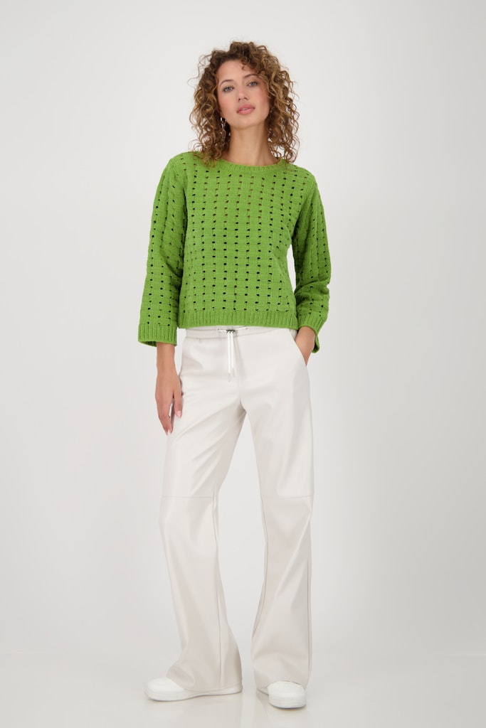 Pullover aus weichem Chenillegarn mit sanfter Haptik, einem Würfelstrickmuster und leicht überschnittenen Schultern. Gemütlich, stylish und vielseitig kombinierbar.