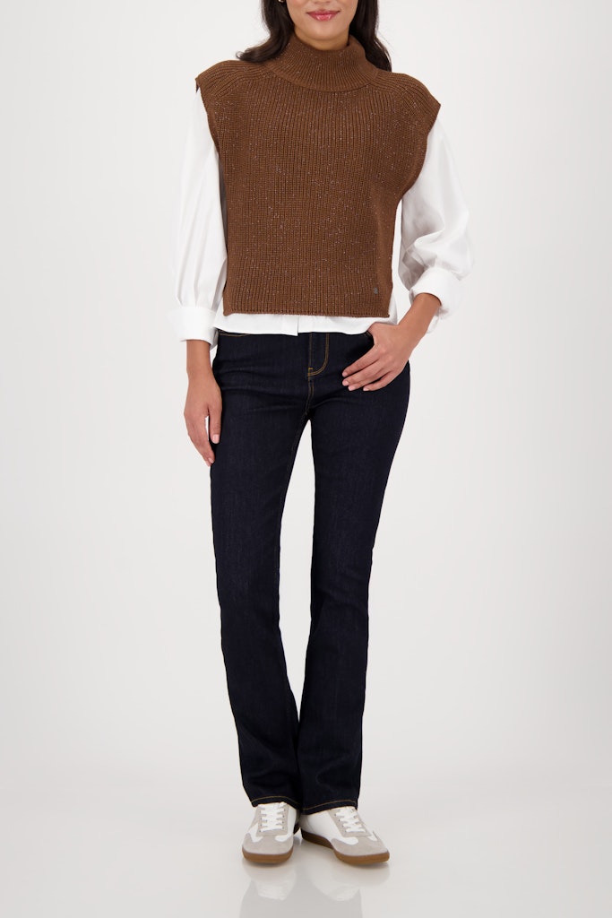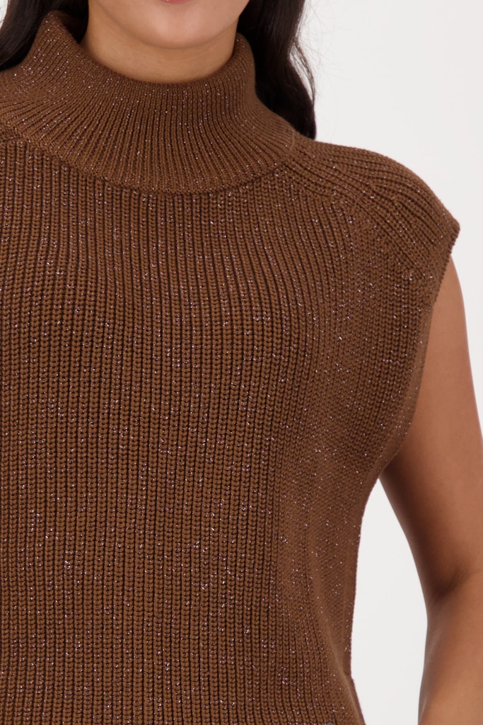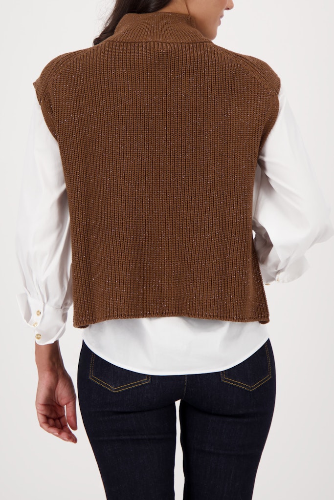 Eleganter Strickpullunder aus einer hochwertigen Baumwollmischung mit glänzendem Lurex und seitlichen Schlitzen für einen zeitlosen Stil.