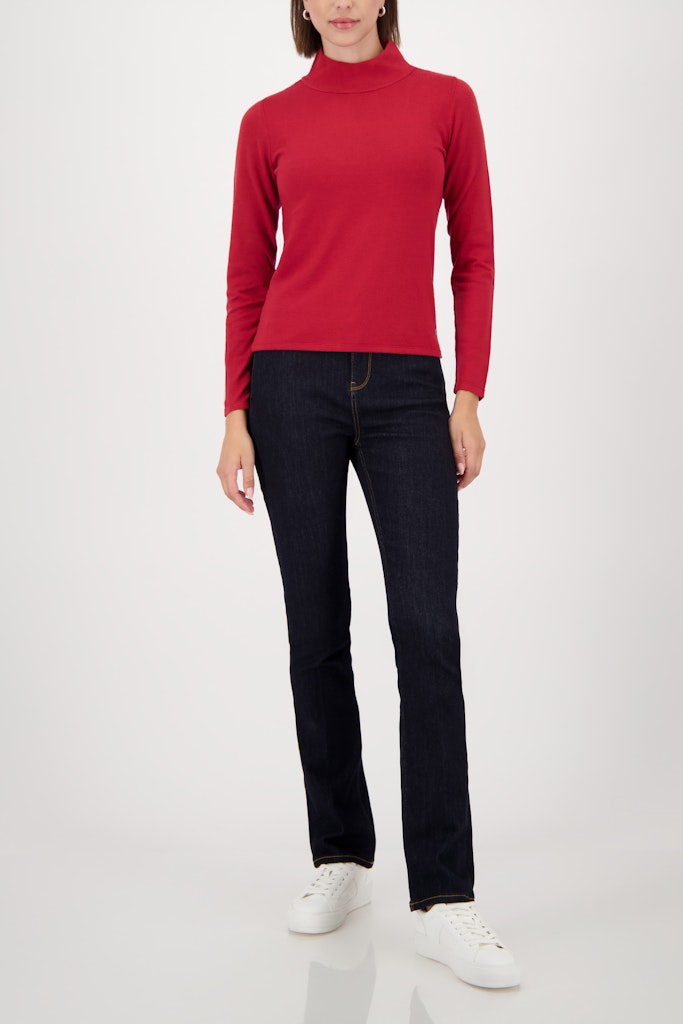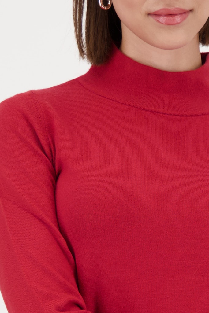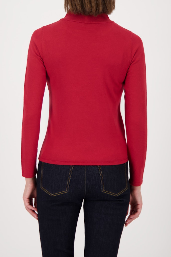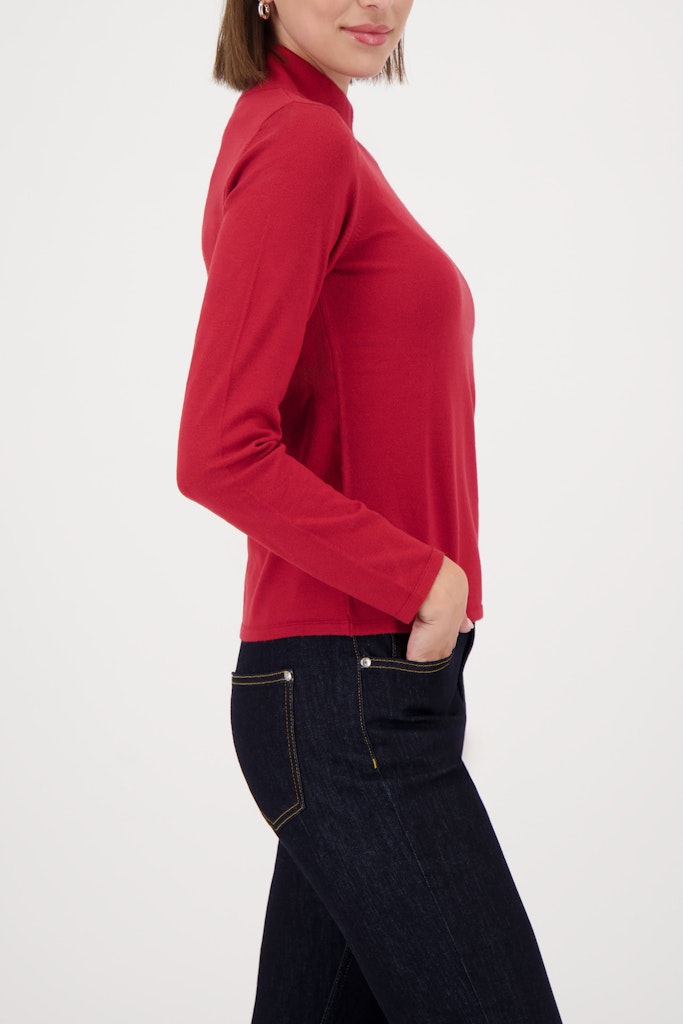 Genießen Sie den stilvollen Basic-Pullover aus fließender Viskose mit weicher Haptik und elegantem Stehkragen.