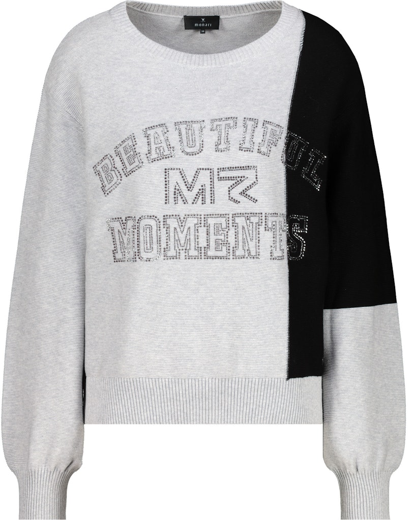 Stylischer Pullover im Colorblocking-Stil aus 100% Baumwolle, mit funkelnden Strasssteinen, lässigen, überschnittenen Schultern und elegantem Rundhalsausschnitt.