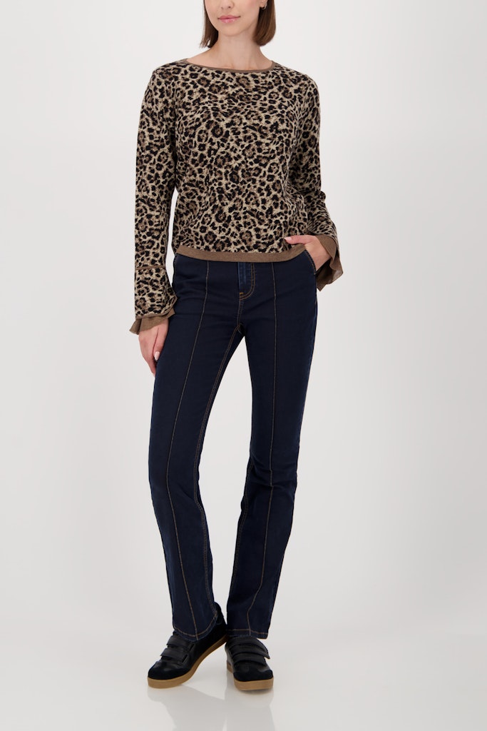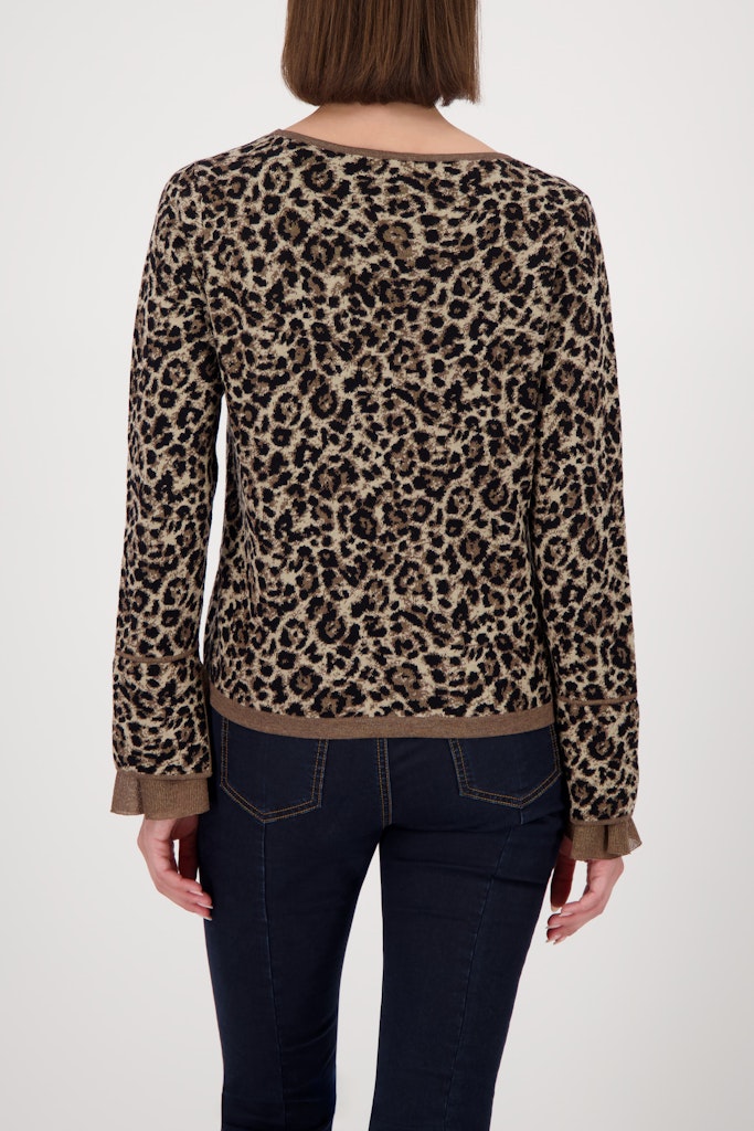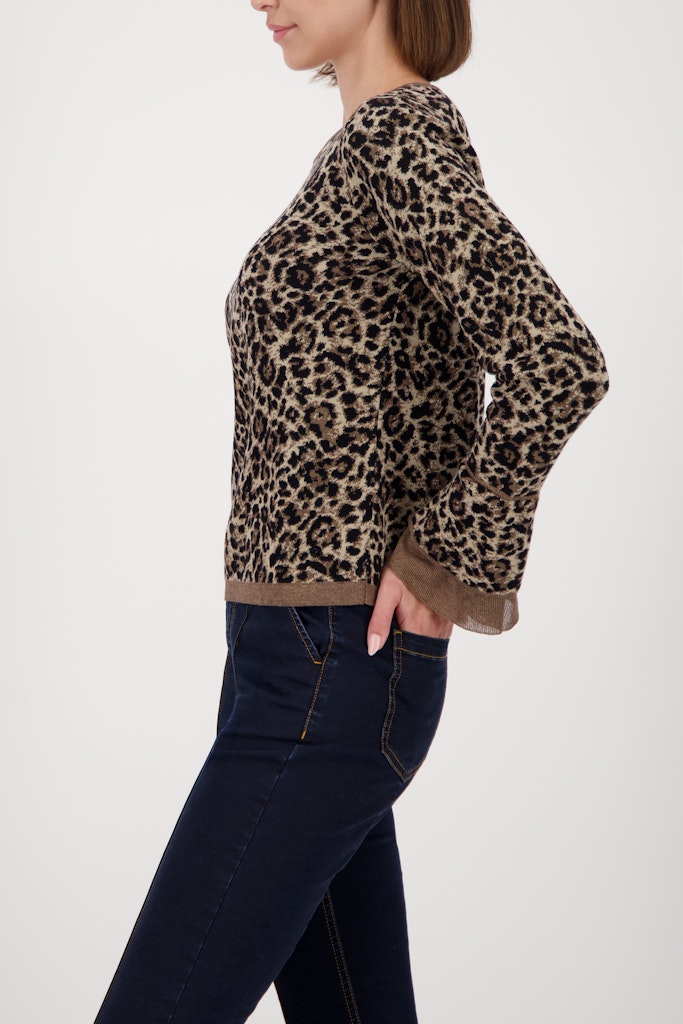 Trendiger Pullover aus einer hochwertigen Baumwollmischung mit fließender Viskose. Ein Allover-Leopardenprint und raffinierte Ärmelsäume mit Schlitz und Stoffeinsatz machen ihn zum Hingucker.