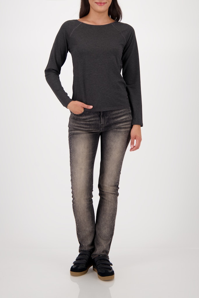 Das Basic-Shirt besticht durch eine fließende Viskosemischung, die für superweichen Tragekomfort sorgt. Die Glanznähte am Ausschnitt und an den Ärmeln verleihen dem Shirt ein elegantes Finish.
