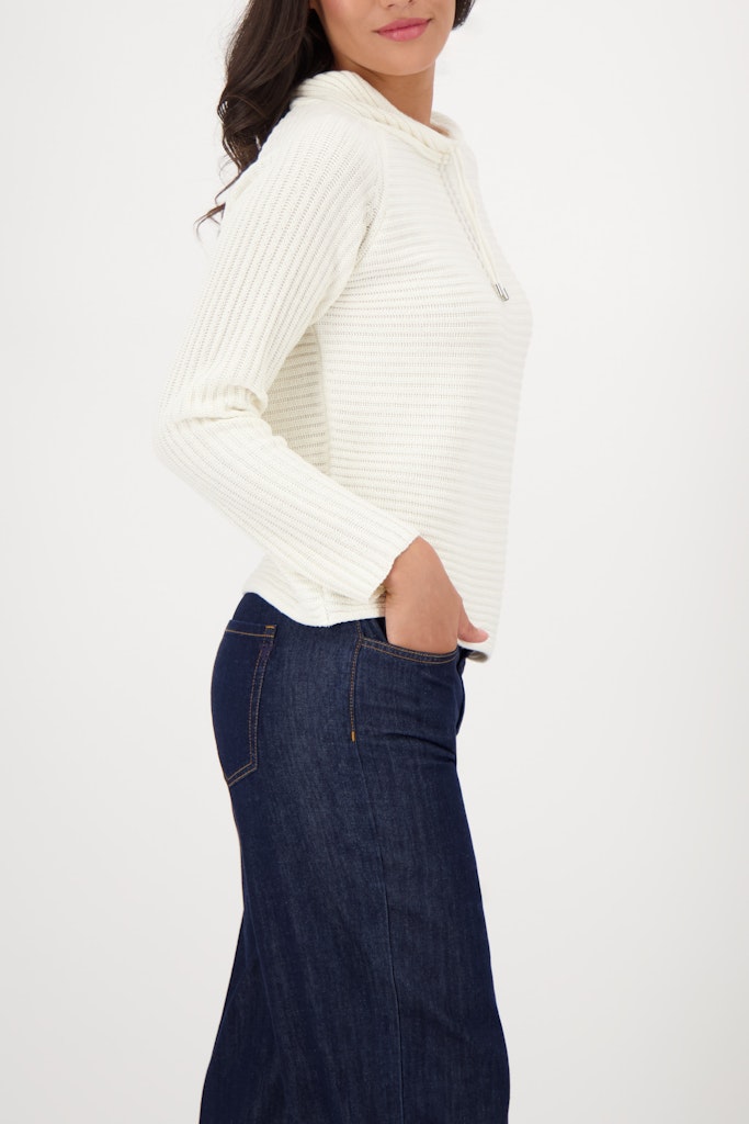 Dieser stilvolle Pullover aus einer hochwertigen Baumwollmischung begeistert mit seiner Rippenstruktur, dem Regular Fit und elegantem Stehkragen mit Bindeband.