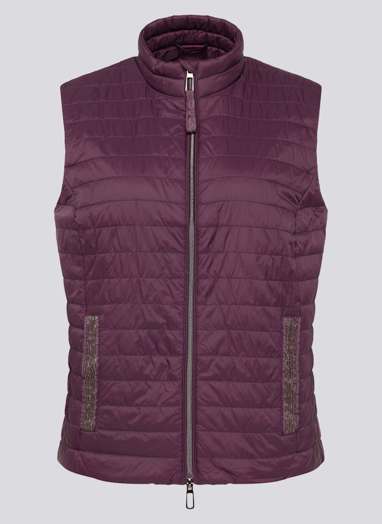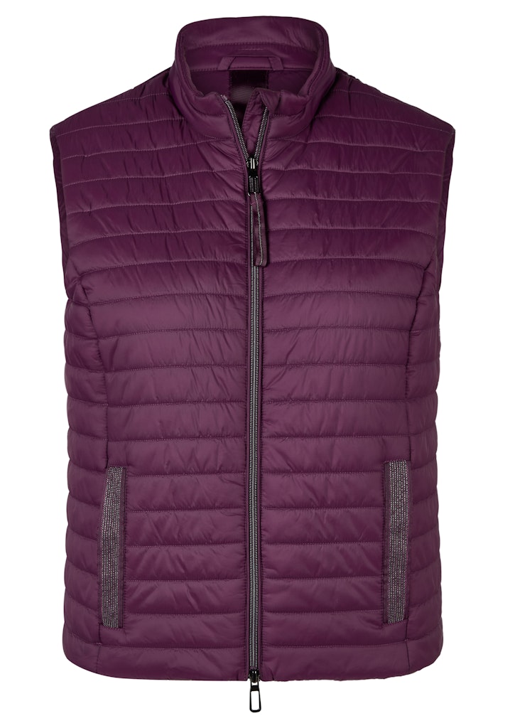 Diese gesteppte Weste punktet mit sportiver Optik und praktischem Design. Die quer gesteppte Struktur verleiht ihr eine moderne Silhouette, während die leicht glänzende Oberfläche und schimmernde Taschenblenden für einen dezenten Blickfang sorgen. Dank ihres leichten Materials trägt sich die Weste angenehm und lässt sich ideal kombinieren _ ob indoor oder outdoor. Pflegeleicht und vielseitig. Leicht wattiert. Reißverschlusstaschen mit Glanzblende. Sportive Steppoptik. Figurschmeichelnder Schnitt. Mit Stehkragen und Reißverschluss.