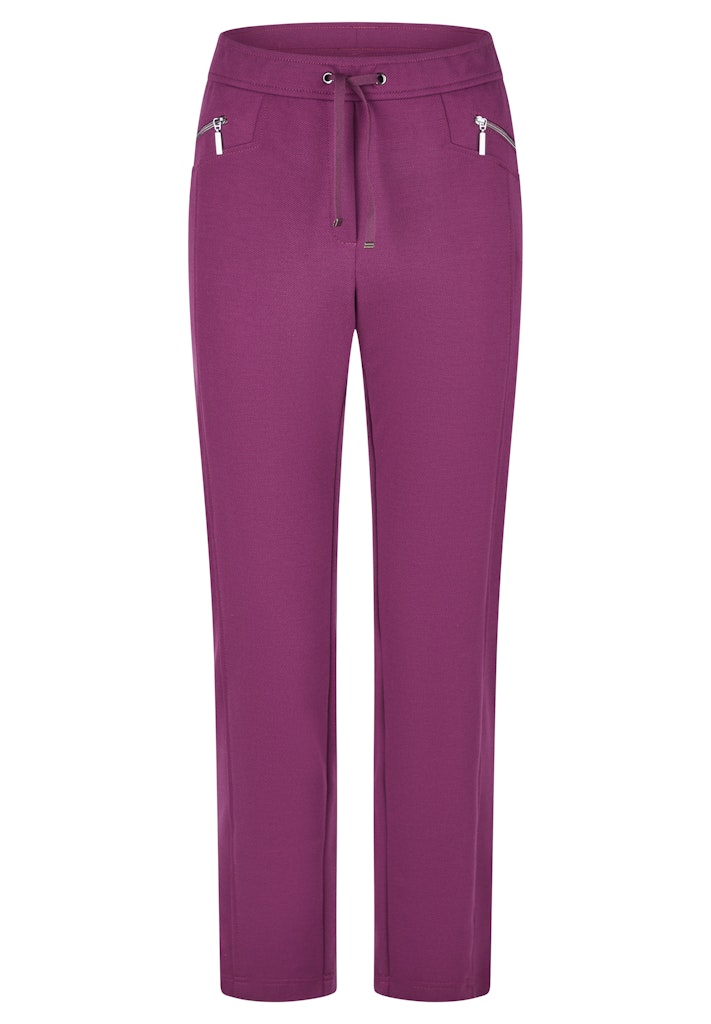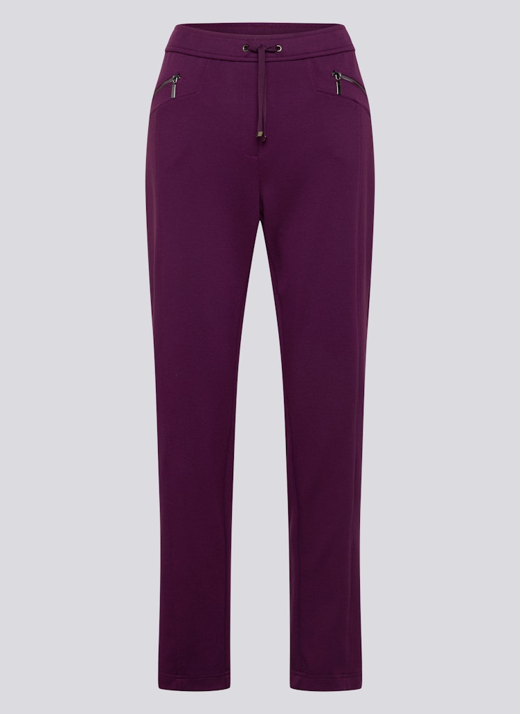 Diese pflegeleichte Schlupfhose überzeugt mit ihrem hohen Tragekomfort und einer stilvollen, schmal zulaufenden Passform. Der elastische Bund mit Bindeband sorgt für eine individuelle Weitenregulierung und optimalen Sitz. Zwei Reißverschlusstaschen vorn setzen sportliche Akzente, während angedeutete Gesäßtaschen den Look abrunden. Die glatte Jerseyqualität bietet Bewegungsfreiheit und bleibt formstabil _ ideal für Alltag und Freizeit. Elastischer Bund mit Bindeband. Zwei Reißverschlusstaschen. Angedeutete Gesäßtaschen. Schmale Beinform. Pflegeleichter Jersey.