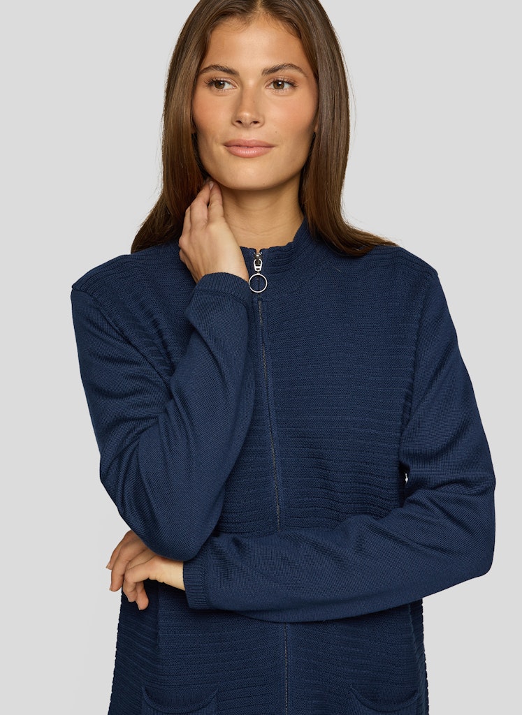 Diese Jacke vereint Tragekomfort mit klarer Linienführung. Der Reißverschluss mit rundem Zipper verleiht dem Look eine moderne Note, während das feine Strukturmuster dem Design Tiefe gibt. Zwei aufgesetzte Taschen bieten praktischen Stauraum. Der gerade Schnitt macht sie vielseitig kombinierbar _ ideal für den Alltag. Weiche Baumwollmischung. Mit aufgesetzten Taschen. Strukturstrick. Hochgeschlossener Stehkragen. 2-Wege-Zipper mit Ring-Zipperpuller.