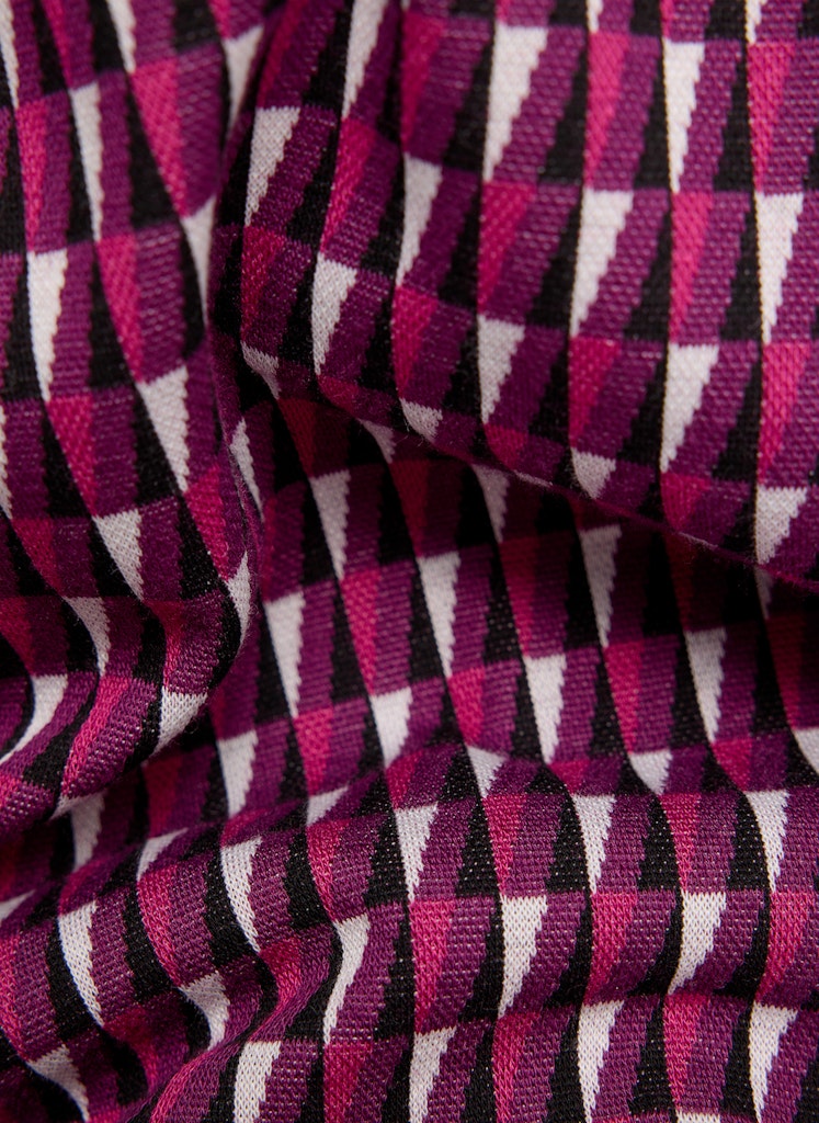 Dieses Shirt mit grafischem Allover-Muster bringt modernen Schwung in Ihre Garderobe. Der kleine Stehkragen sorgt für eine stilvolle Silhouette, während das weiche, pflegeleichte Material angenehm auf der Haut liegt. Die 3/4-Ärmel machen es zur idealen Wahl für jede Übergangszeit _ ob solo getragen oder unter einer Jacke. Pflegeleichtes Material. 3/4-Ärmel. Kleiner Stehkragen. Bequemer Schnitt. Grafisches Design.