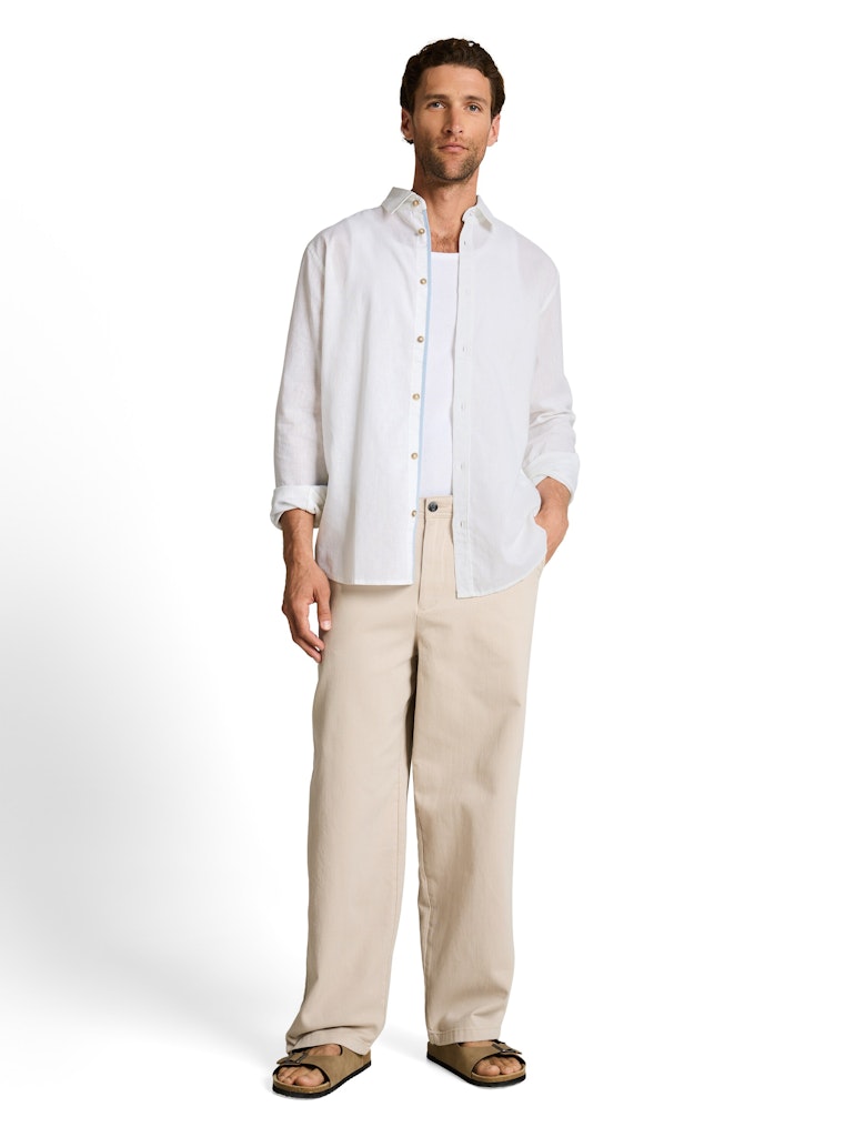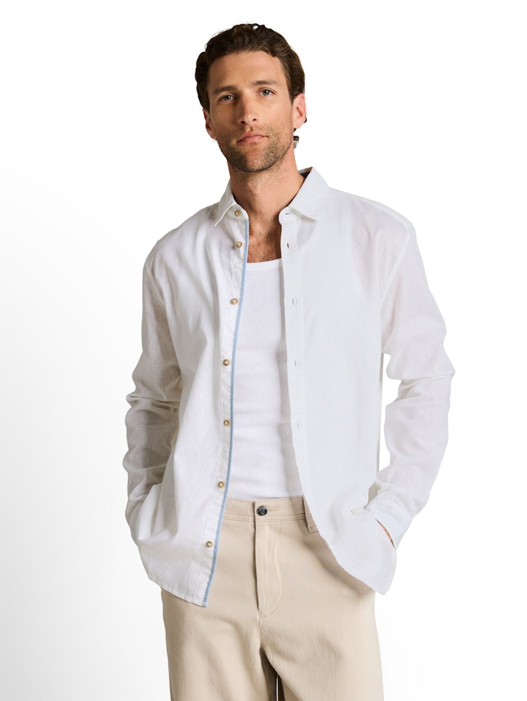 Leinenhemd mit Kentkragen aus einem Baumwoll-Leinen-Stoff. Leinenanteil eignet sich ideal bei warmen Temperaturen für ein leichtes und kühlendes Tragegefühl.