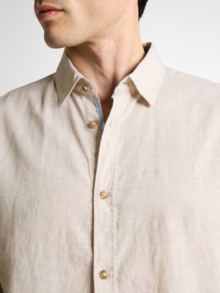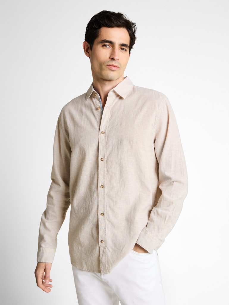 Leinenhemd mit Kentkragen aus einem Baumwoll-Leinen-Stoff. Leinenanteil eignet sich ideal bei warmen Temperaturen für ein leichtes und kühlendes Tragegefühl.