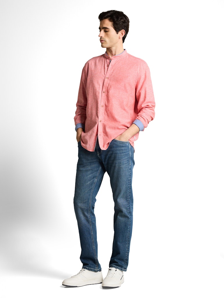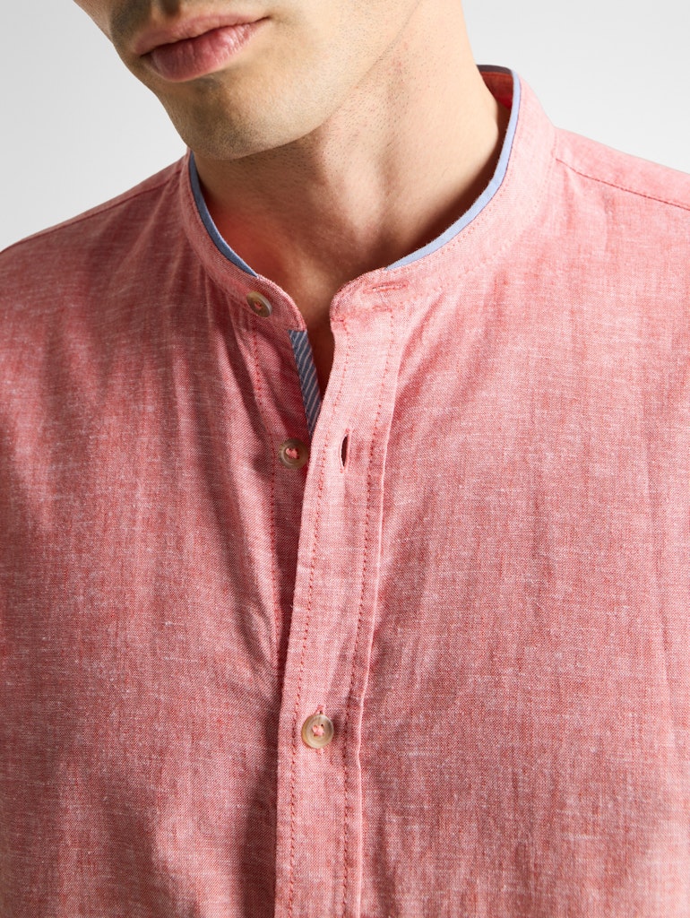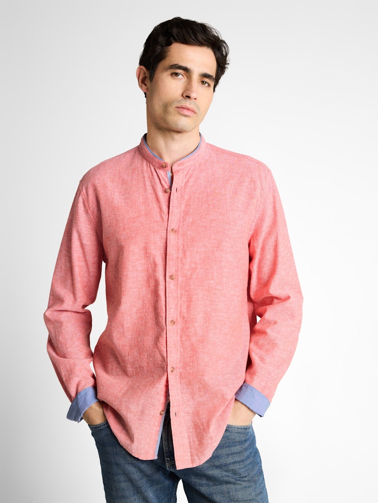 Leinenhemd mit Stehkragen aus einem Baumwoll-Leinen-Stoff. Leinenanteil eignet sich ideal bei warmen Temperaturen für ein leichtes und kühlendes Tragegefühl.