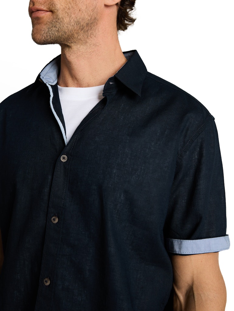 Leinenhemd mit Kentkragen und kurzen Ärmeln für den Frühling und Sommer. Leinenanteil eignet sich ideal bei warmen Temperaturen für ein leichtes und kühlendes Tragegefühl.