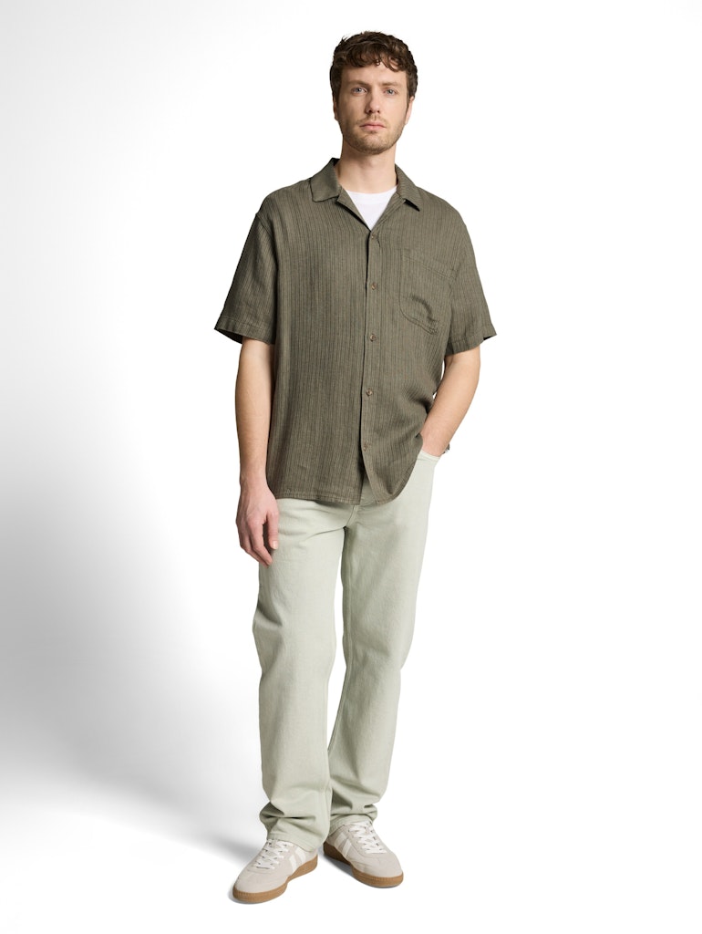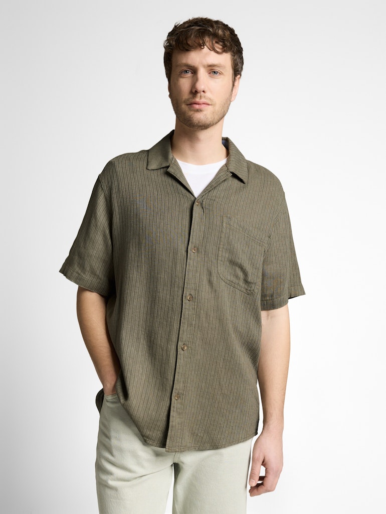 Hemd mit Reverskragen, Brusttasche und kurzen Ärmeln für den Sommer und Frühling. Aus einem gestreiften Popeline-Gewebe mit Leinen. Leinenanteil eignet sich ideal im Frühling und Sommer für ein leichtes und kühlendes Tragegefühl.