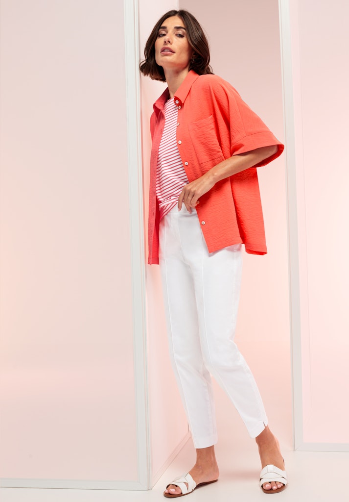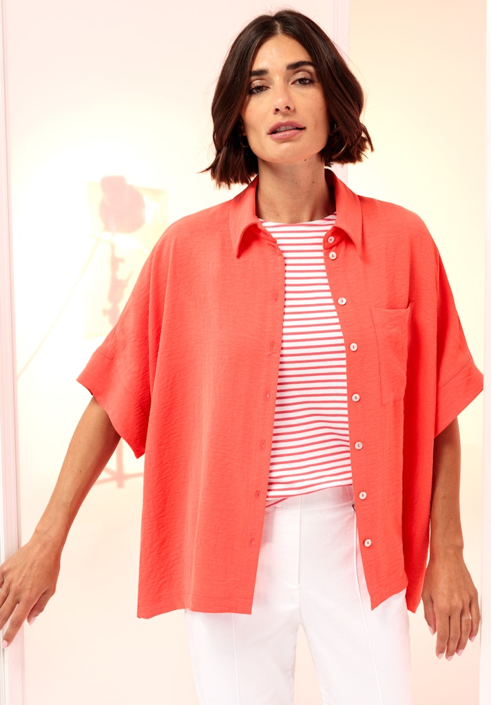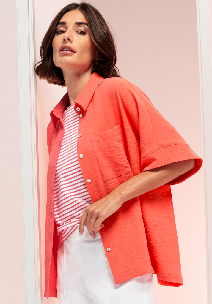 Lässiger Chic für jede Gelegenheit! Unsere neue Hemdbluse Sabea begeistert mit ihrer weiten Oversized-Passform und dem klassischen Hemdblusenkragen. Der weit überschnittene Kurzarm und die coole Trendfarbe verleihen ihr eine moderne Ausstrahlung. Eine durchgehende Knopfleiste und die Brusttasche unterstreichen den lässigen Look. Gefertigt aus einer pflegeleichten Qualität, trägt sich Sabea angenehm leicht - perfekt für vielseitige Stylings, ob casual oder schick kombiniert!
