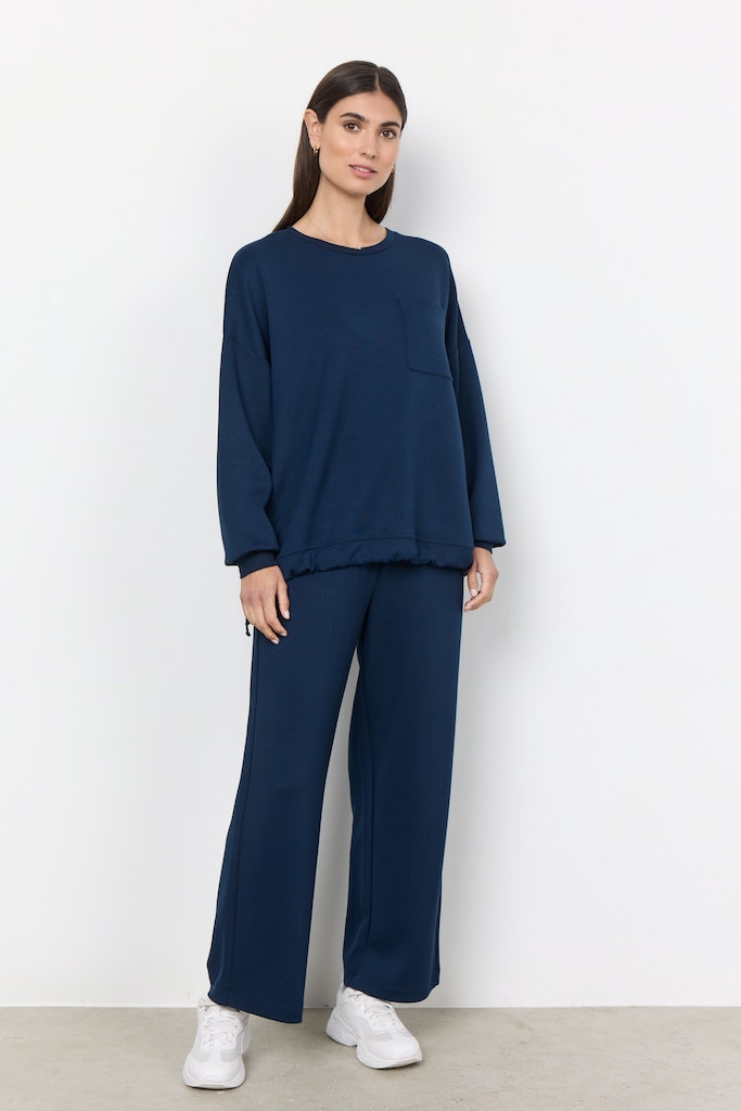 SC-Banu 33 ist eine bequeme Hose aus einer Modal-Polyester-Mischung. Sie hat Gummibänder und Bindebänder in der Taille, ein gerades Beindesign und eine lockere Passform. Diese weiche Jogginghose ist perfekt für den Alltag und entspannte Tage zu Hause.