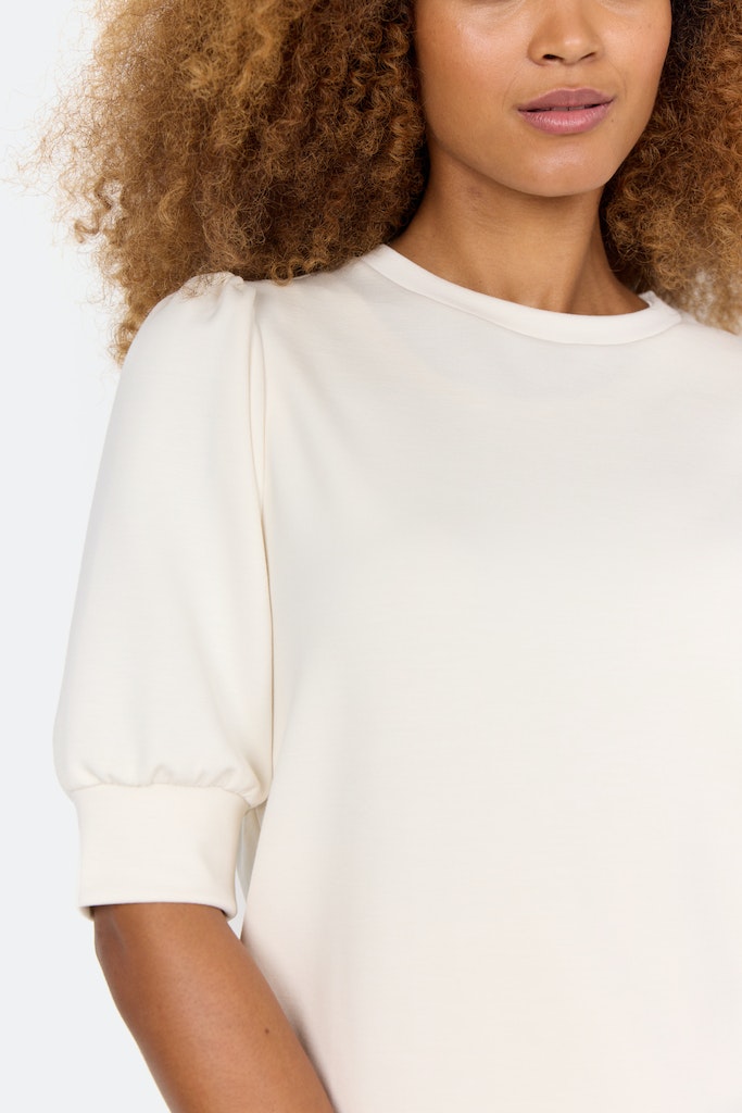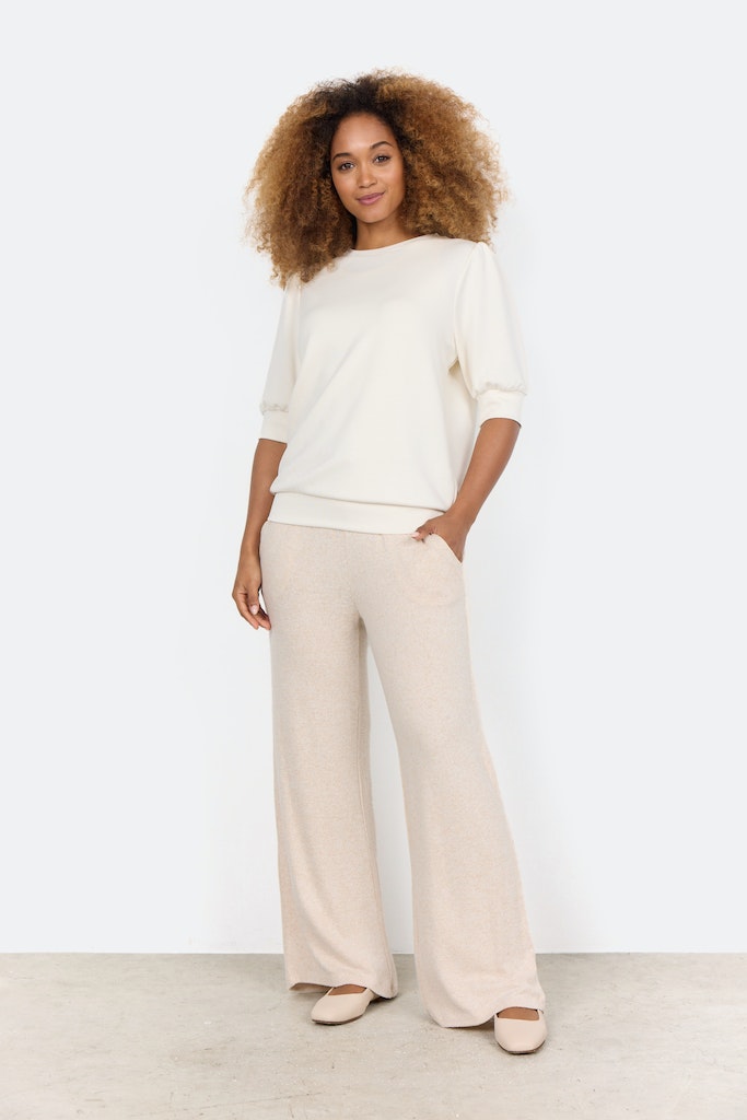 SC-Banu 83 ist eine sehr bequeme Bluse in weicher Sweat-Qualität, die sich perfekt für die kuscheligen Tage eignet. Die Bluse hat ein schlichtes Design mit Rundhalsausschnitt und schönen kurzen Ärmeln, um einem ansonsten lässigen Stil eine feminine Note zu verleihen. Es passt perfekt zu einem Paar passender Sweatshorts für einen entspannten und stilvollen Look.