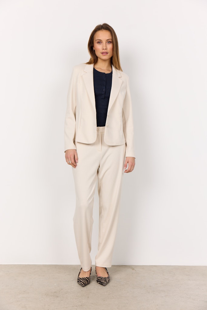 SC-Daniela 1 ist ein femininer Blazer aus einer weichen Mischung aus Polyester, Viskose und Elastan. Dieser Blazer hat eine schöne taillierte Passform, einen Reverskragen, lange Ärmel und zwei Knöpfe. Trage diesen schönen Blazer über einem klassischen Oberteil und einer Hose für einen femininen Look.