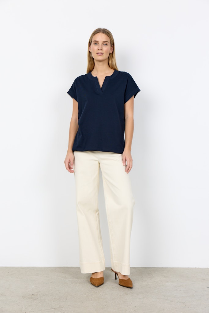 SC-Derby 27 ist ein Basic-T-Shirt, das nur aus Bio-Baumwolle besteht. Das T-Shirt hat einen schmeichelhaften Rundhalsausschnitt, kurze Ärmel und eine lockere Passform. Kombiniere es mit einer bunten Hose und einer Strickweste für einen ausgefallenen Look.