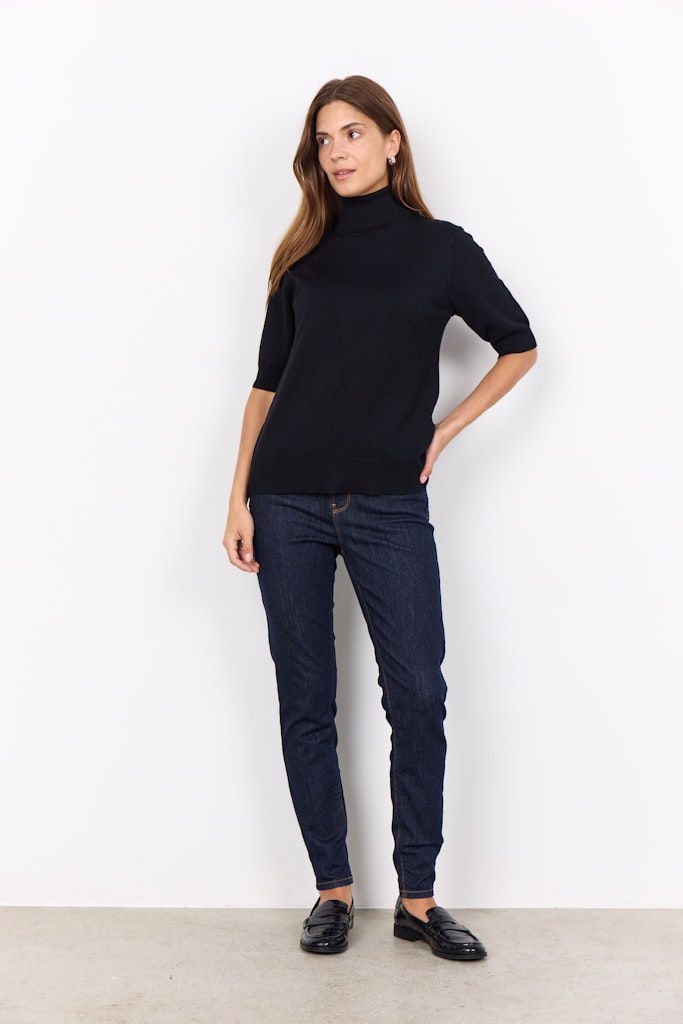 SC-Dollie 740 ist ein klassischer Pullover aus einer schönen Mischung aus Viskose und Nylon. Der Pullover hat einen Rollkragen, kurze Ärmel und eine enge Passform. Kombiniere diesen schönen Pullover mit einer Hose, einem Blazer und einer schönen Handtasche für einen professionellen Look.