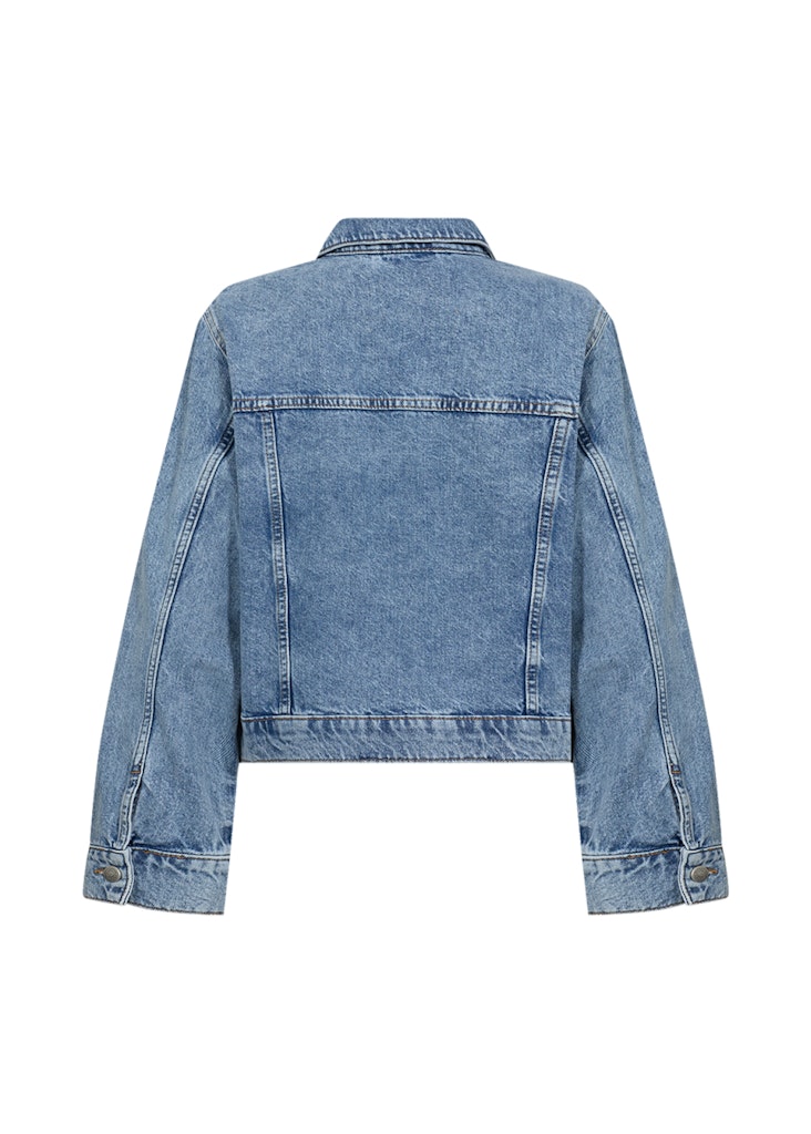 SC-Dolores 2 ist eine lässige und moderne Jeansjacke aus einer schönen Mischung aus Baumwolle und recyceltem Polyester. Die Jacke hat einen Hemdkragen, einen Knopfverschluss, lange Ärmel, zwei Vordertaschen und ein tailliertes Design. Kombiniere diese schöne Jacke mit einem bedruckten T-Shirt und einer Leinenhose für einen schönen Look.