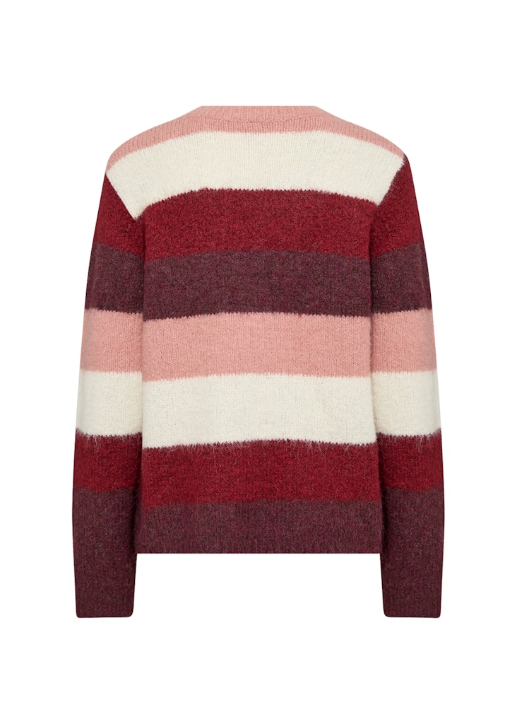 Der SC-ILENE 3 Pullover besteht aus 59% recyceltem Polyester, 21% Nylon, 11% Polyester, 8% Wolle und 1% Elasthan. Der Pullover hat einen Rundhalsausschnitt und breite, horizontale Streifen in wechselnden Farbtönen. Kombiniere ihn mit Jeans für einen entspannten Look oder trage ihn über einem Hemd mit Kragen für zusätzliche Textur.