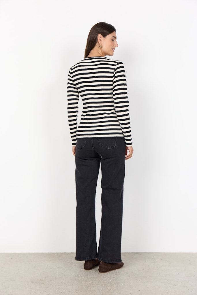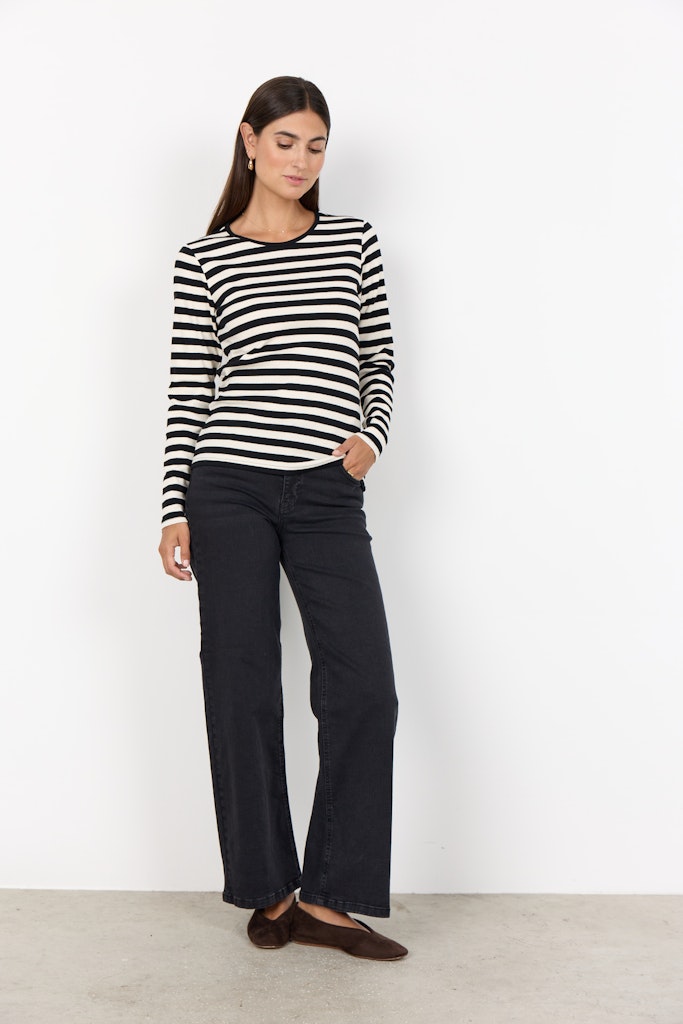 SC-Irdi 1 ist ein lässiges Langarm-T-Shirt aus einer angenehmen Mischung aus Bio-Baumwolle und Elastan. Das T-Shirt hat einen Rundhalsausschnitt, lange Ärmel, eine normale Passform und einen Streifenprint. Kombinieren Sie es mit einem langen Rock und einem Blazer für einen modischen Alltagslook.
