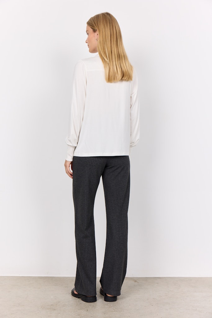 SC-Marica 303 ist eine klassische Bluse aus einer schönen Mischung aus Lyocell und Elastan. Die Bluse hat einen schmeichelhaften Schlitzausschnitt, eine Knopfleiste, lange Ballonärmel, Smokbündchen und eine lockere Passform. Kombinieren Sie sie mit einer Hose und einer Strickweste für einen klassischen Look.