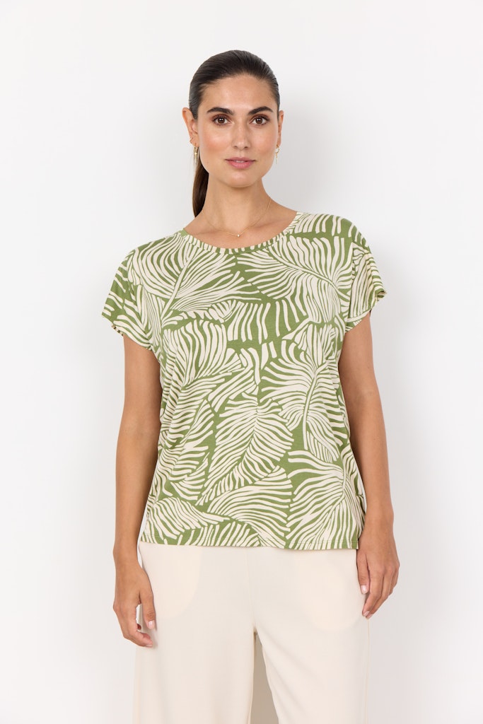SC-MARICA AOP 330 ist ein bequemes T-Shirt aus 93% Lyocell und 7% Elastan. Es hat einen Rundhalsausschnitt, kurze Ärmel und ein Allover-Druckmuster. Das T-Shirt lässt sich mit verschiedenen Unterteilen kombinieren, um eine Vielzahl von Alltagslooks zu kreieren.