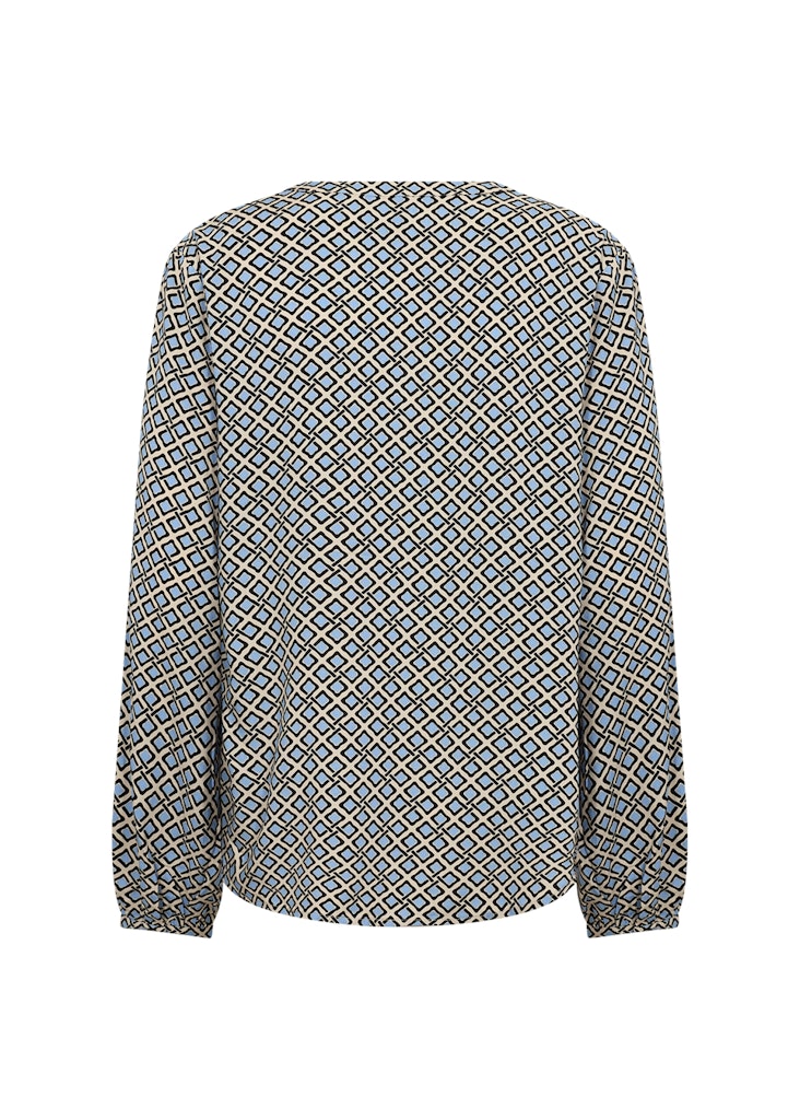 Die Bluse SC-PAN 2 besteht aus 100% ECOVERO Viskose. Sie ist mit einem geometrischen Druck versehen, hat einen V-Ausschnitt mit kurzer Knopfleiste und lange Ärmel, die dank der geknöpften Manschetten elegant ausgestellt sind. Kombiniere sie mit einer maßgeschneiderten Hose und Slippern für einen eleganten Look, der sich sowohl für das Büro als auch für Freizeitausflüge eignet.