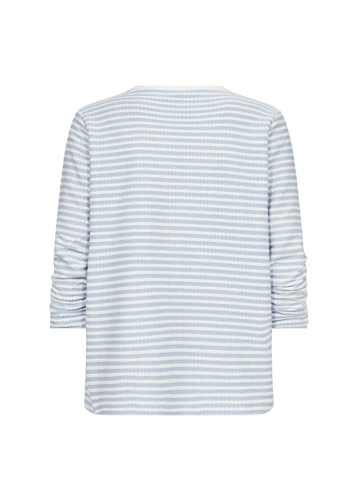 SC-PISA 2 ist ein T-Shirt aus 72% recycelter Baumwolle, 25% ECOVERO Viskose, 3% Elasthan. Das Oberteil hat einen bequemen Rundhalsausschnitt, 3/4-lange Ärmel mit Raffungen und eine normale Passform mit einem horizontalen Streifenmuster. Kombiniere es mit Ihrer Lieblingshose und Slippern für einen alltäglichen Look, der sowohl elegant als auch bequem ist.
