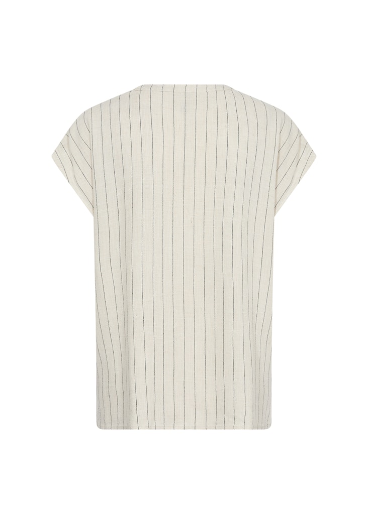 SC-POULA 1 ist eine Bluse aus 70% ECOVERO Viskose, 30% Leinen. Diese leichte Bluse hat einen V-Ausschnitt, kurze Ärmel und ist mit vertikalen Streifen versehen. Sie kann mit einer passenden Hose oder einem Rock für einen raffinierten Look kombiniert werden.