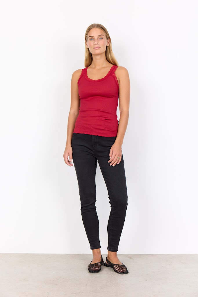 SC-Sarona 1 ist dein Must-Have-Oberteil aus einer exklusiven Seiden-Baumwoll-Mischung. Es ist ein klassisches Rundhals-Top mit Spitzendetails und Rippenoptik. Es ist ein feminines Top, das sich perfekt als bequemes Basic unter all deinen coolen Shirts und Kleidern eignet.