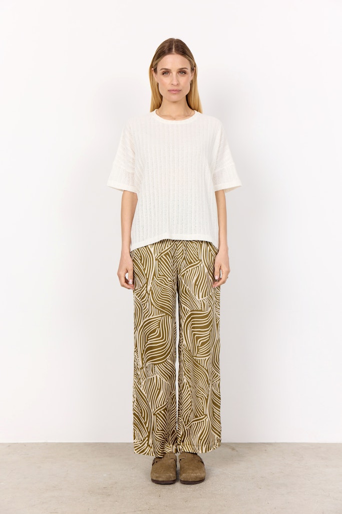 Die SC-SHONAS 2 Bluse ist aus 70% Bio-Baumwolle und 30% recyceltem Polyester gefertigt. Sie hat einen Rundhalsausschnitt, kurze Ärmel und eine dezente, offen gestrickte Textur für zusätzliche Details. Kombiniere sie mit Jeans oder einem Rock für einen entspannten und bequemen Look.