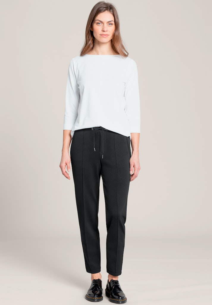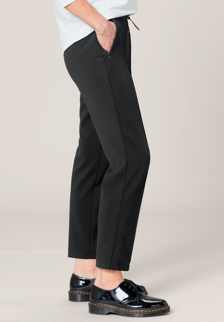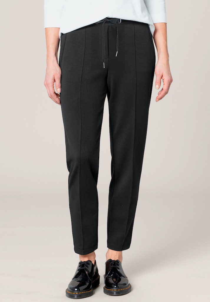 Zeitlos, modern und immer up to date - Die coole Jerseyhose Siena aus hochwertigem Materialmix mit Elasthan trägt sich super angenehm. Die schmale verkürzte Passform mit dem bequemen Gummibund mit Bindeband und die Biese auf der Vorderhose machen die Hose zu einem absoluten Hingucker! Die schrägen Zipper-Taschen vorne und die seitlichen Schlitze am Saum runden den Look ab. Kombiniere Siena sportlich mit Sneakern und Shirt oder schick mit Bluse und Blazer fürs Büro