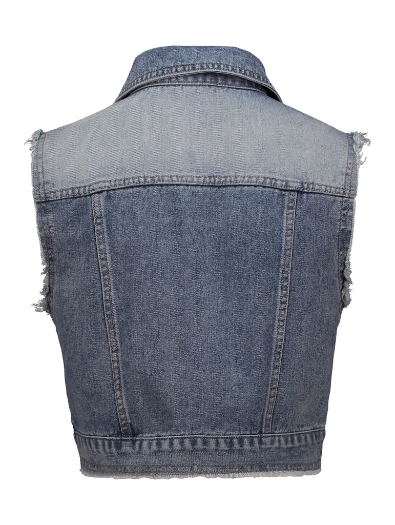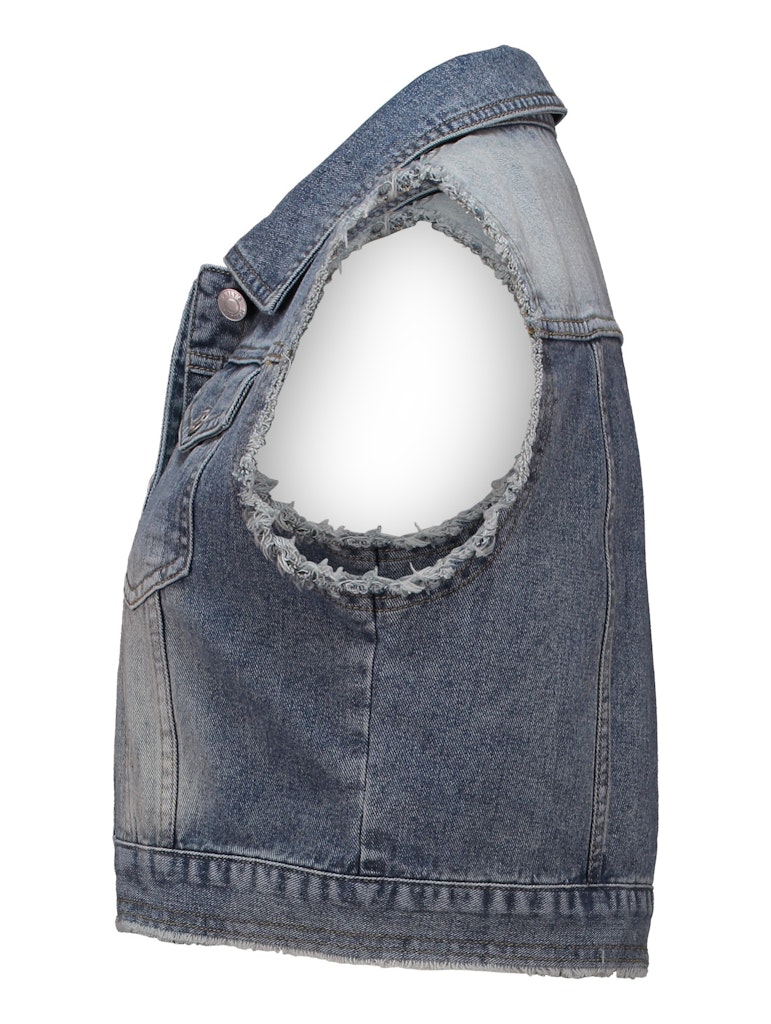 Denim-Weste im Used-Look mit Kragen und Knopfleiste, sowie Brusttaschen.